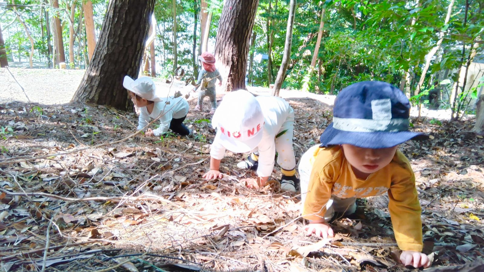暑い暑い9月です。外遊びもままなりません。それでも瓜生山は、少しずつ秋の気配を感じています。くり、どんぐり、まつぼっくり…子どもたちの手のひらに、いろいろな木の実が握り締められるようになりました。