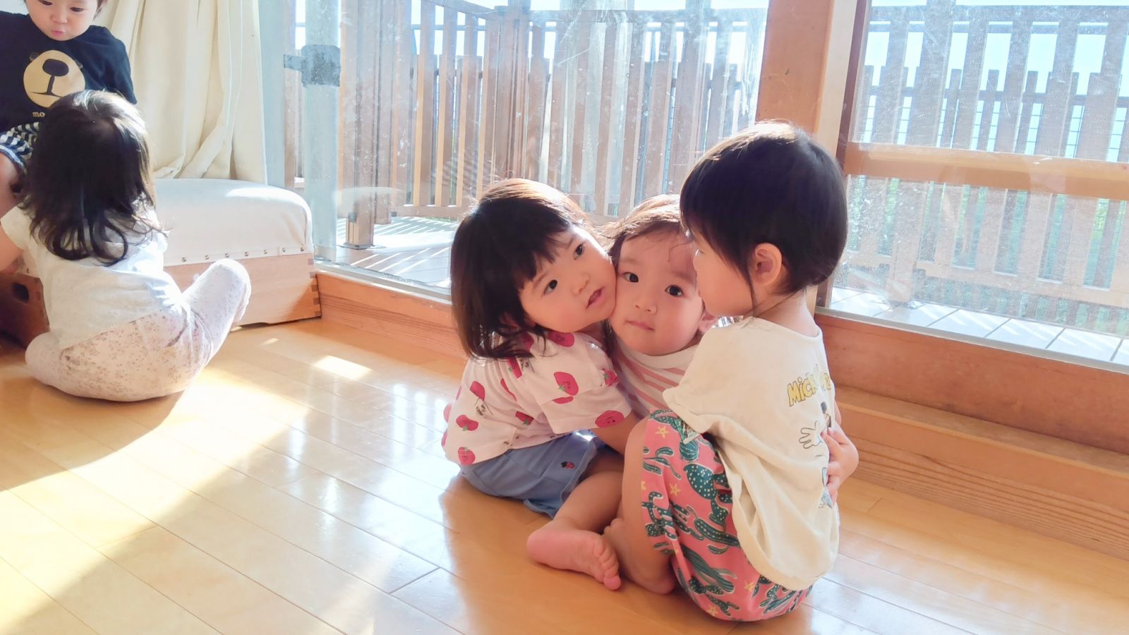 なんとなく子どもたちの表情も寂しそうになりますけれども、お迎えに来てくれたお父さんやお母さんの姿を見た途たん、子どもたちの目は美しい夕日のように輝きます。