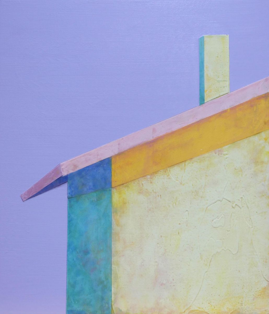 佐東さん:『色彩に暮れる (Crepuscular Colors)』では、油絵の具ではなく主にアクリル絵の具と日本画でよく使用される岩絵の具や胡粉(貝殻を砕いて作られる白色の粉末顔料)を使い、表面のざらっとした質感を表現しています。一見、ミニマルに見えますが、そぎ落とせばそぎ落とすほどいいと思っているわけではなく、要素を整理し、最小限にして自分の表現したいものを相対的に強調したいと考えています。