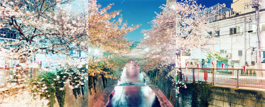 勝又先生の『Panning of Days "3 Days in 3 Years"』は、目黒川の桜を複数年にわたって撮影した作品です。「真ん中の1枚を2006年に撮って、左右の1枚を次の年、また次の年というように順々に撮影することで、『写真における時間性の解体と再統合』に挑戦しています」と勝又先生はその実験的なアプローチを説明しました。