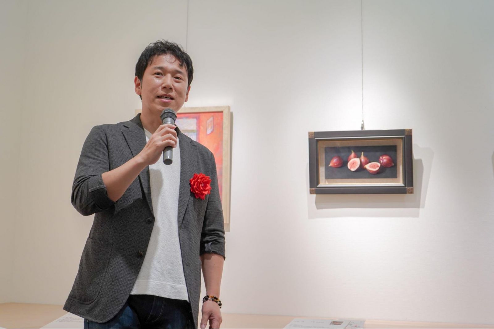 大路先生は『イチジク』を「物をしっかり見つめて描くことを大切にした写実的な作品」だと説明します。大路先生は臨場感を絵の中で大切にしていて、そこに物があるような感じ、香りが漂ってくるような感じ、掴んで食べたら美味しそうな感じを見る人と共有したいと考えているそう。たしかに、じっと見つめているとイチジクの香りが漂ってきそうですね。