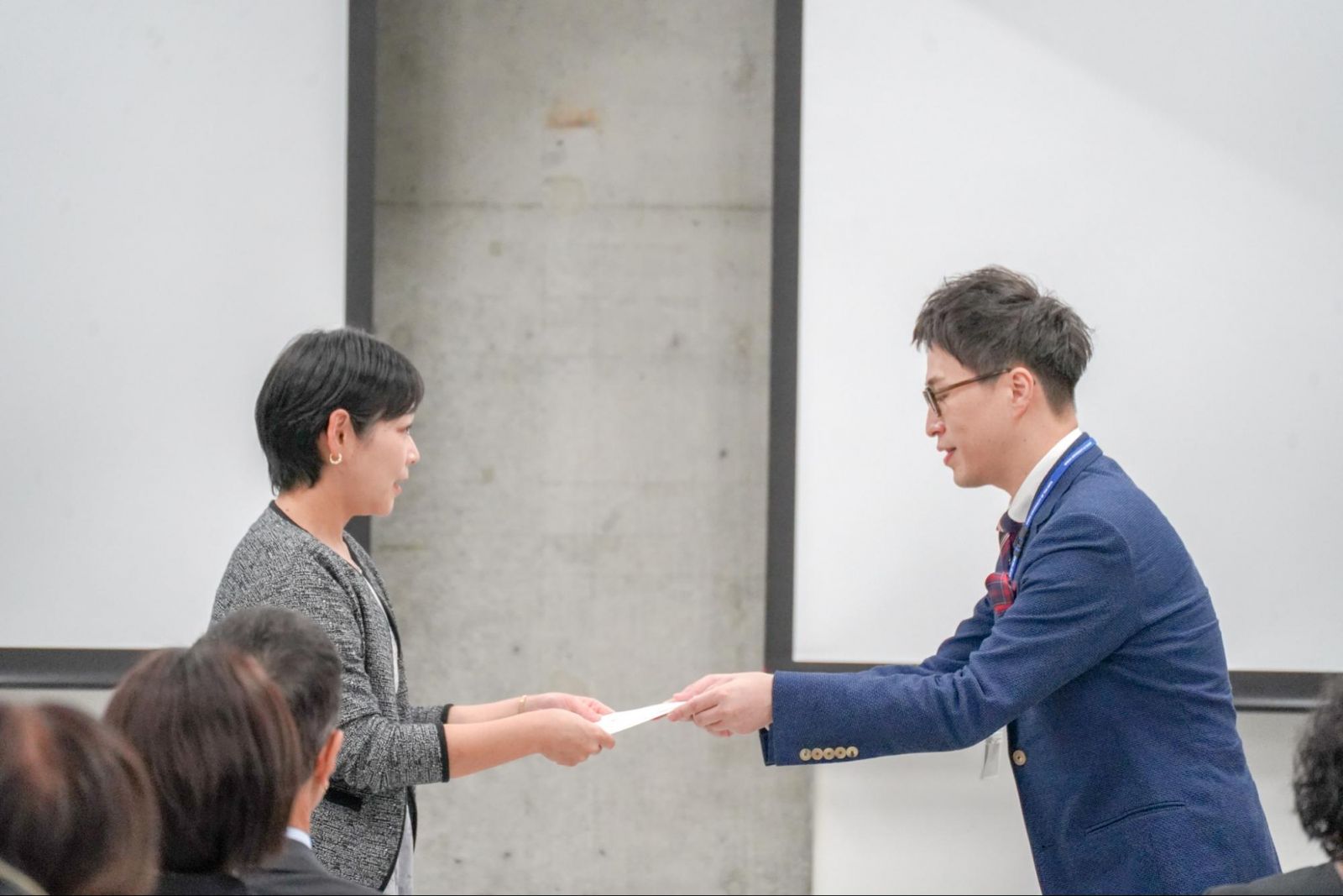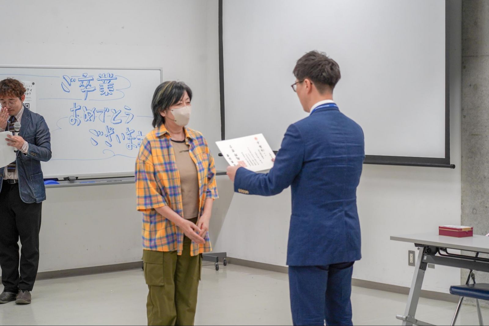 卒業式閉式後には、通信教育部芸術教養学科の分科会が行われました。宮信明学科長より、卒業式に出席された卒業生お一人ずつに証書を授与しました。各賞の受賞者の発表、賞状授与も行われ、互いに拍手で同志を讃え、門出を祝い合う時間となりました。