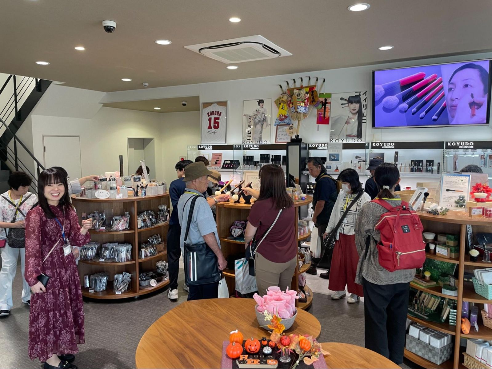 ここでも多くの学生が筆を購入しており、特に書画コースや日本画コースの学生に好評で、両手いっぱいに筆を抱えた学生たちの姿が印象的でした。先ほどの化粧筆とあわせて、まさに「爆買いツアー」という言葉がぴったりの光景でした。バスの出発時、店の方々が笑顔で手を振って見送ってくださり、また来てね!という言葉が聞こえてくるようでした。