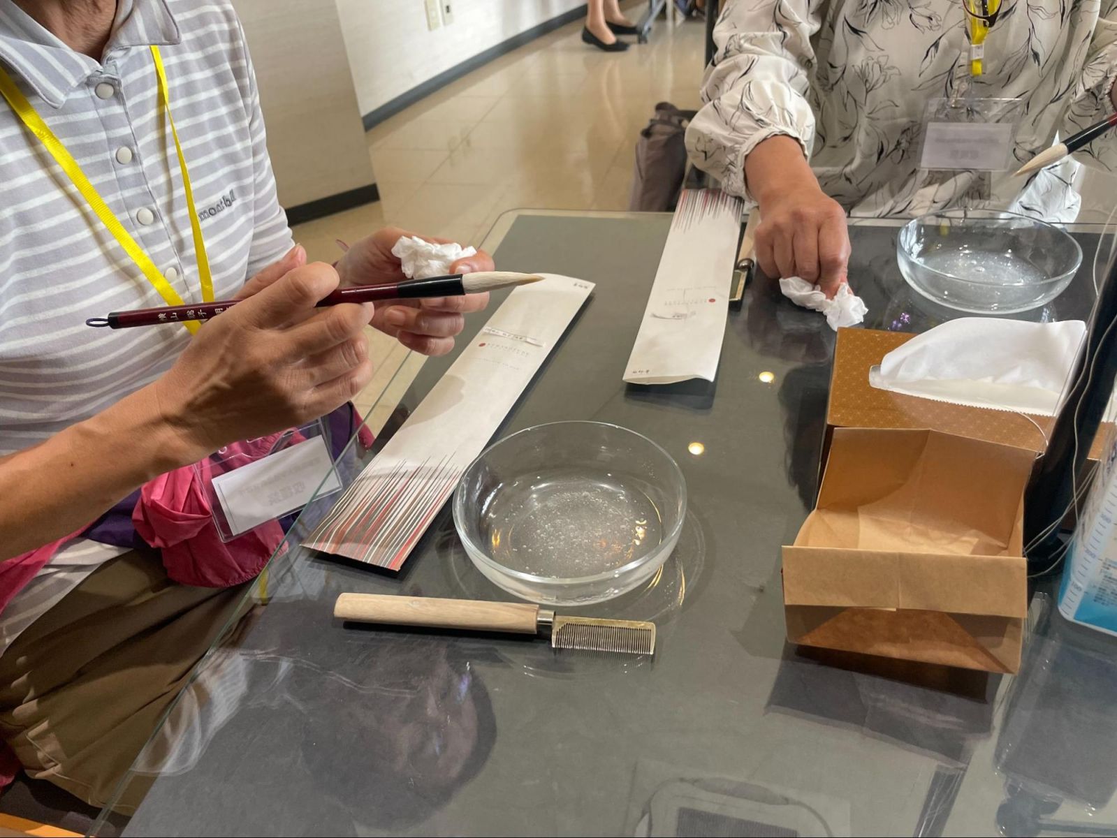 当初、芸術を志す学生にとって化粧筆は縁遠いかもしれないと思っていましたが、実際にはそんな心配は無用でした。品質の高さと手頃な価格もあってか、特に女性を中心に大盛況。次々と化粧筆を購入する姿に、私も思わず驚きました。並べられていた化粧筆は、普段化粧筆に縁のない私から見てなかなか立派なお値段でしたが、納得の人気ぶりでした。