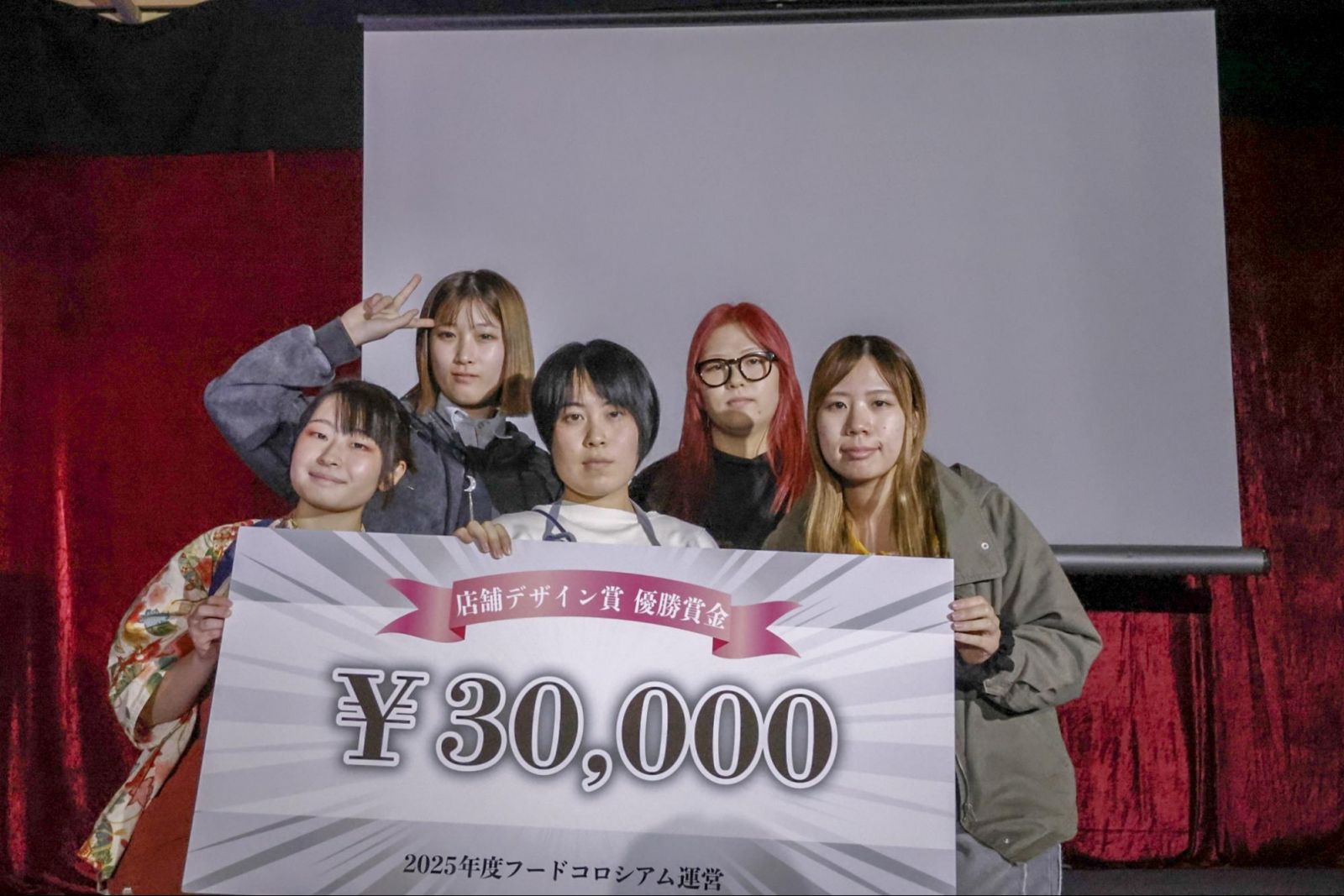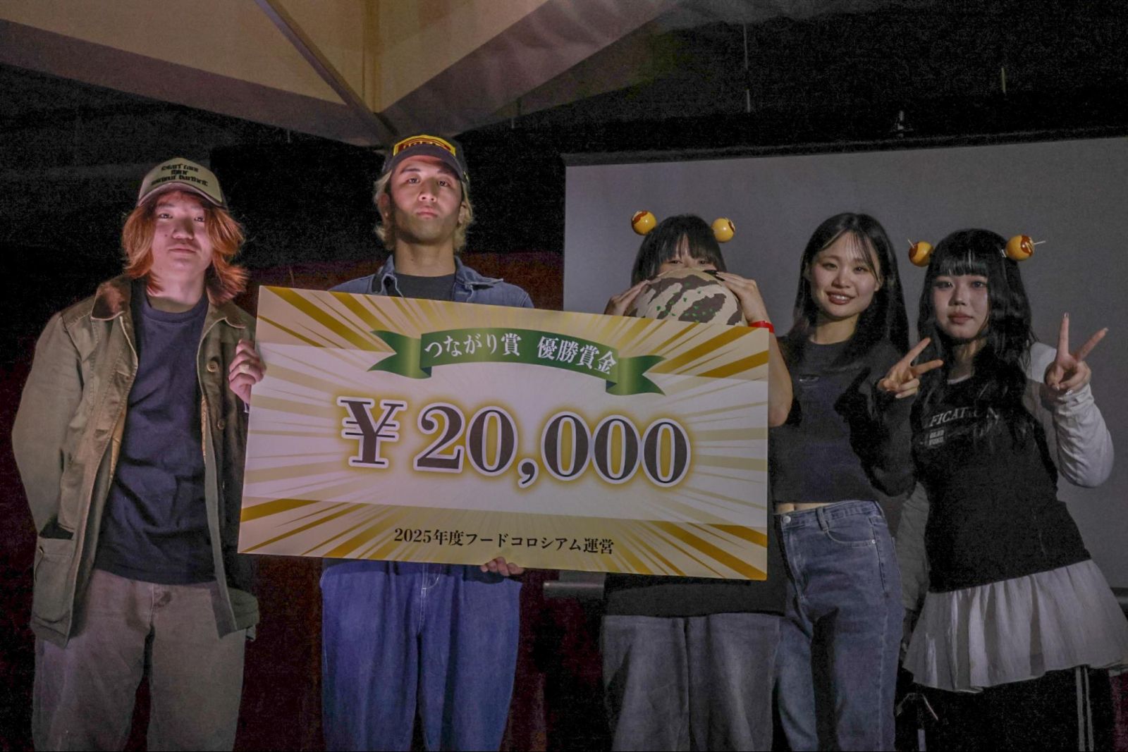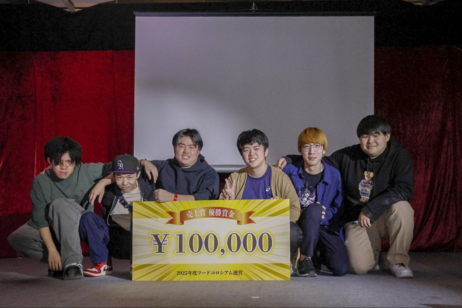 2日目には、至誠館5階(学生食堂)にて、フードコロシアム授賞式が行われました。最も多く売り上げたのは、情報デザイン学科! 全世代の人に愛される屋台メニュー「唐揚げ」を903食提供しました。2位は環境デザイン学科(658食)、3位にプロダクトデザイン学科(529食)と続きました。