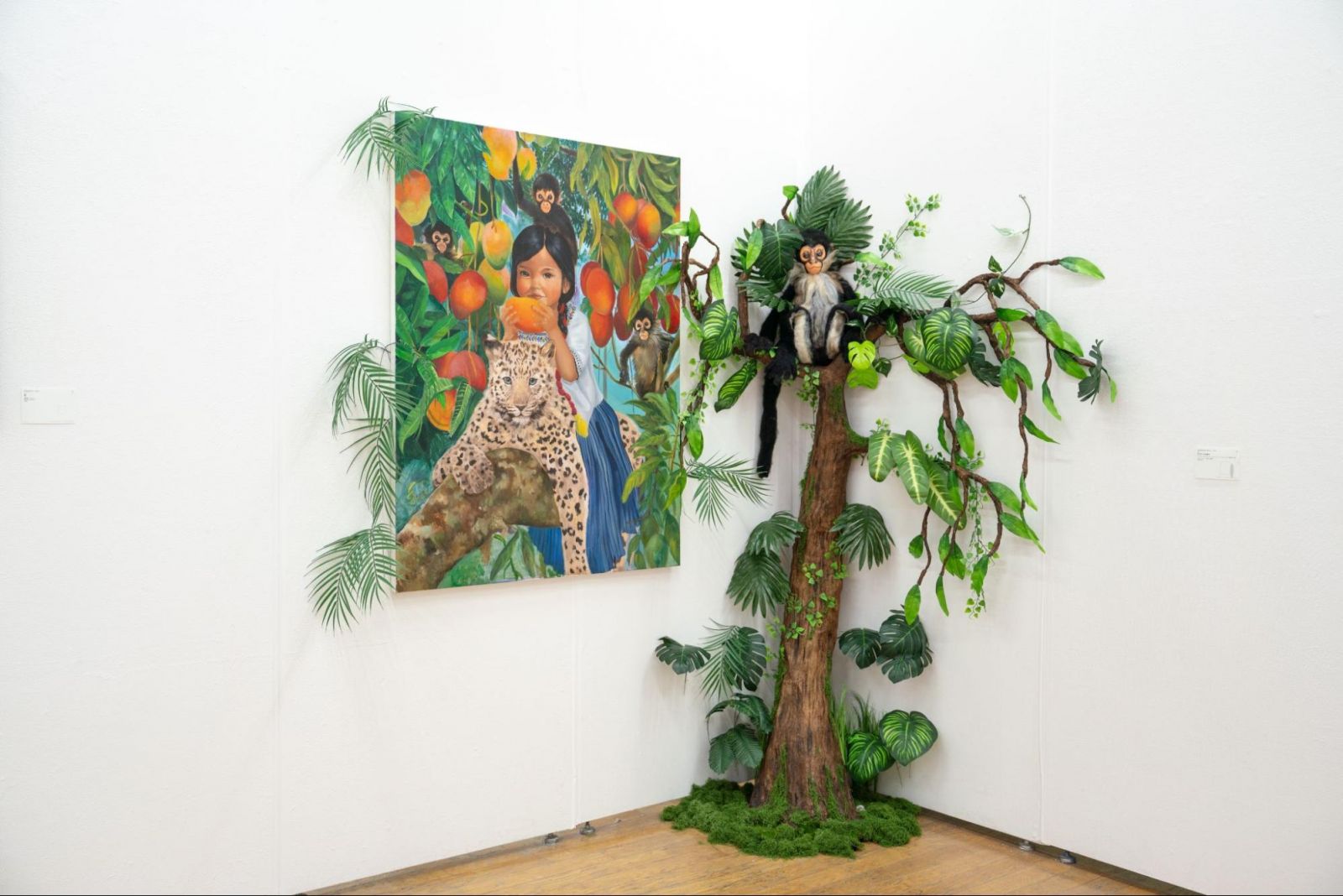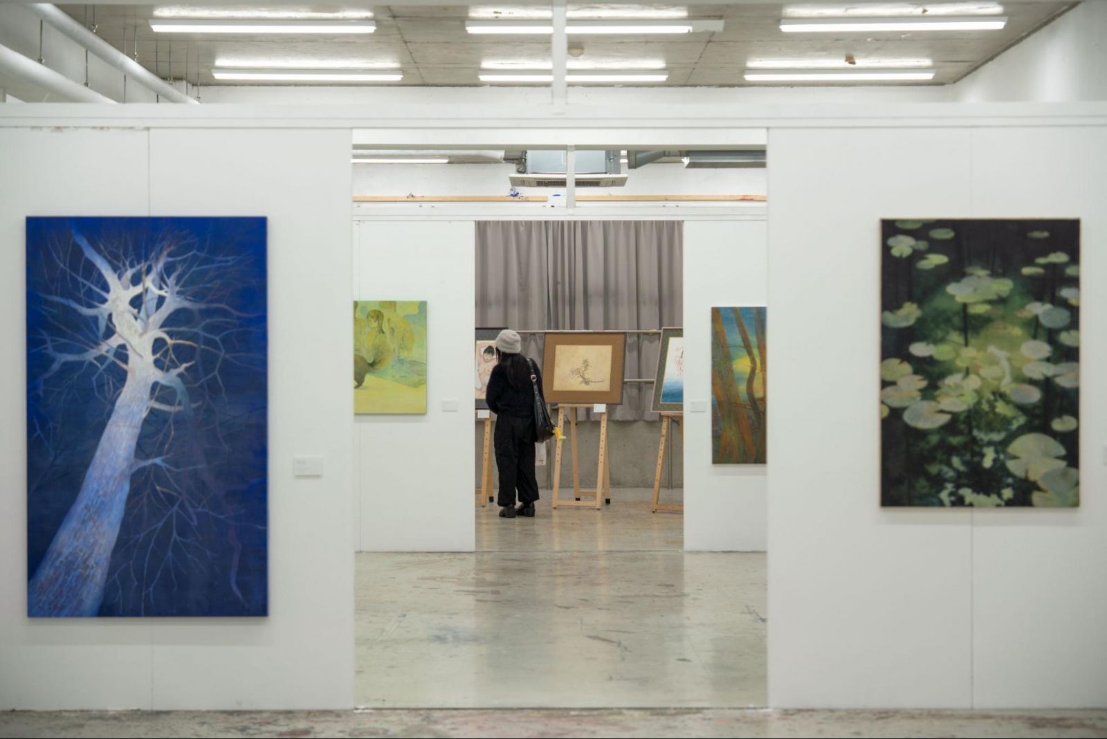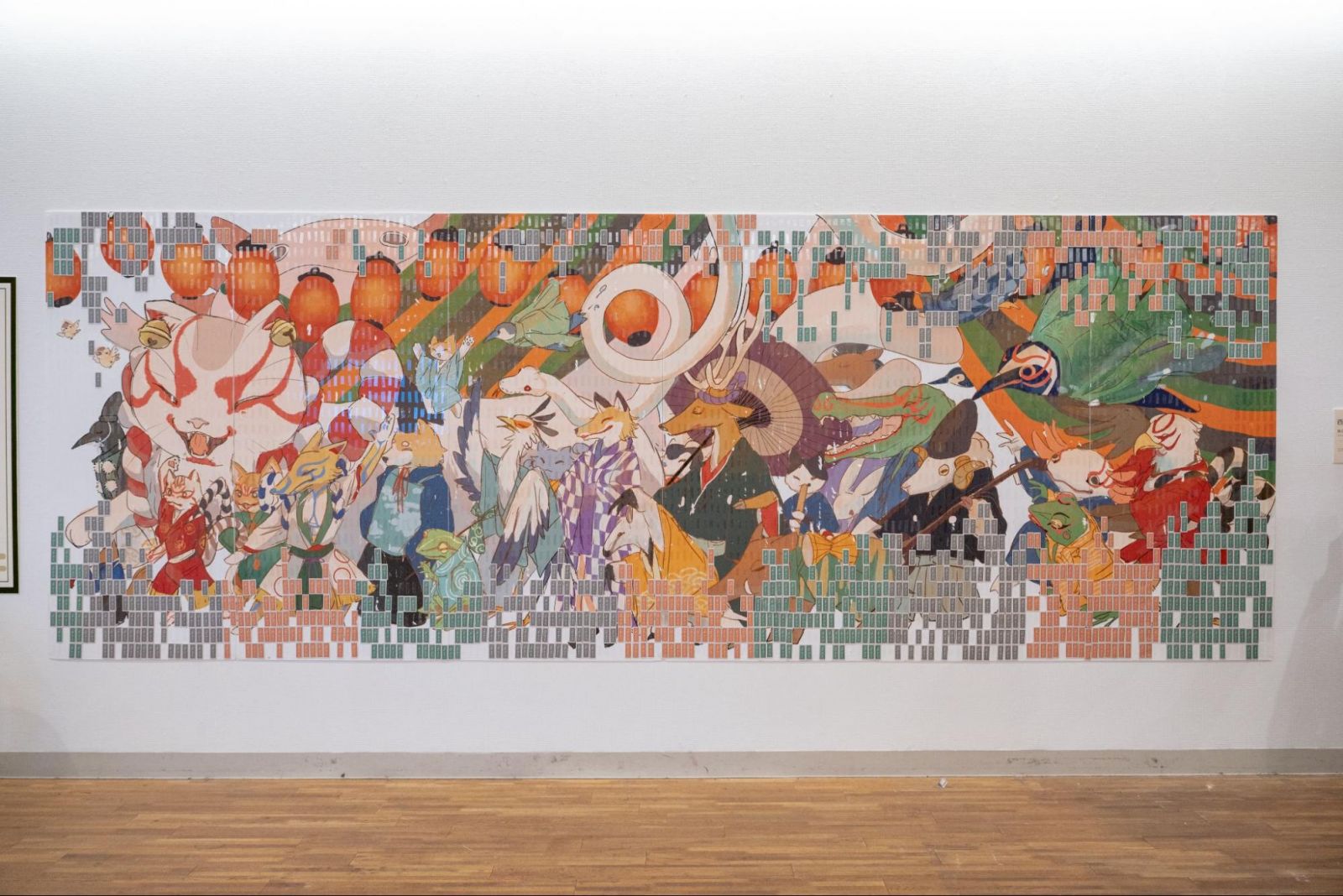 日本画コースでは、同コースの有志が運営・開催する「0号展」という企画も行われていました。同コースの1〜2年生が学園祭で展示するきっかけ作りや、だれもが簡単に作品を発表できる場を作ることを目的として、S0号(18cm✕18cm)の作品を募集。壁一面に個性豊かな学生たちの作品が展示されました。同じS0号のフォーマットでも、学生によってまったく異なる表現が見られ、来場者にとってはお気に入りの作家を見つける機会になりました。