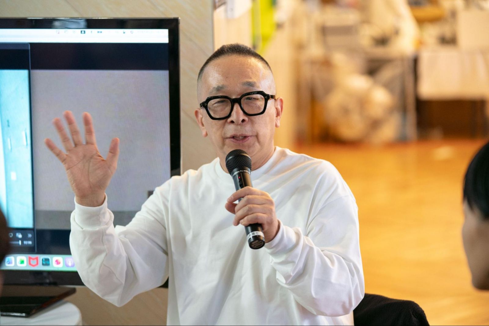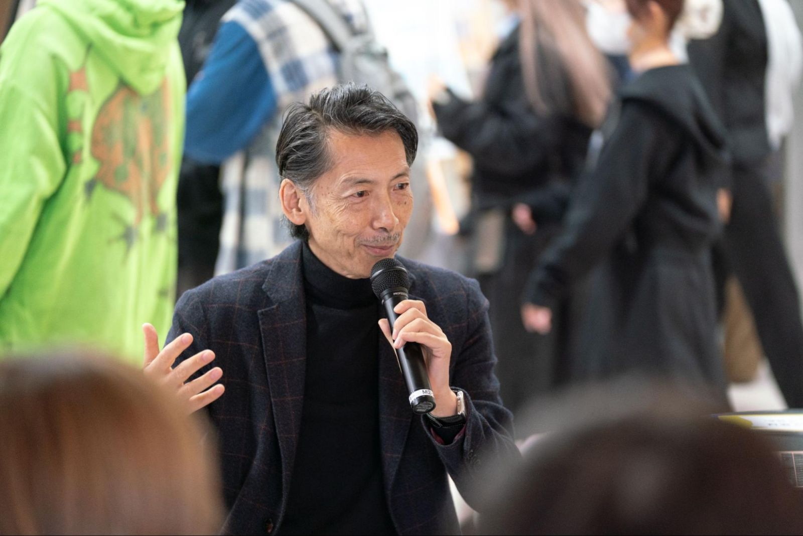 同じくカフェブースでは、デジタル地球儀「触れる地球」/SPHERE開発者の竹村眞一さんと本学の佐藤卓学長の特別トークセッションも開催されていました。「地球のデザインとは?」をテーマに、これまで佐藤学長が行ってきた展覧会やデザインした商品などの具体例も交えながら、自然と人間の関係性を考えるトークとなりました。