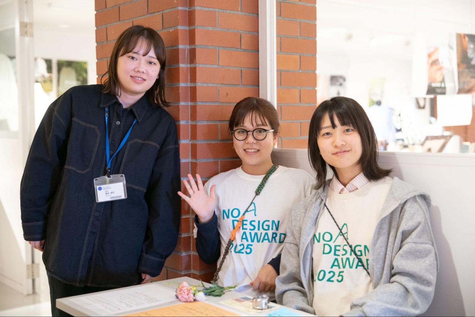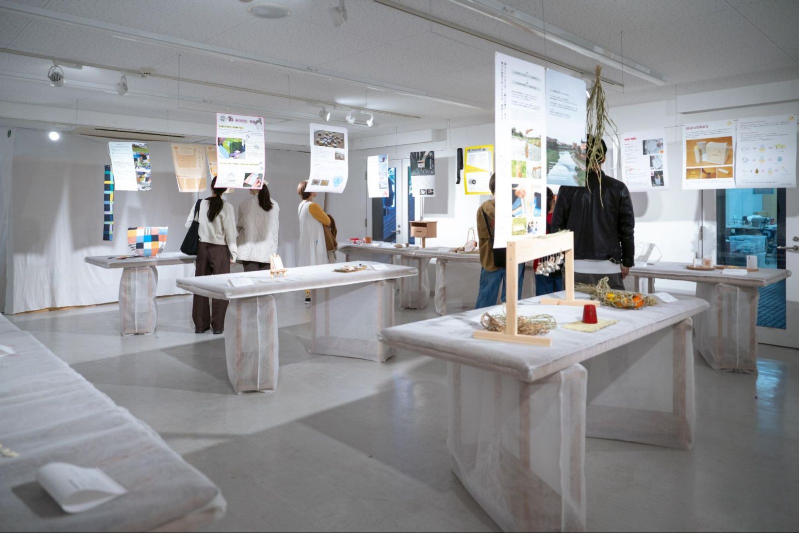 まず向かったのは空間演出デザイン学科。学科の3年生が取り組んだNO(W)DESIGN AWARDというコンペ形式の課題の成果作品を展示しました。今年のテーマは「LIFE→SUSTAINABLE」です。海洋プラスティックごみ問題やモノの大量消費と廃棄によって引き起こされる地球環境問題や気候変動の課題に向き合い、サスティナビリティ(持続可能性)を持った暮らしや社会の在り方を提案しました。
