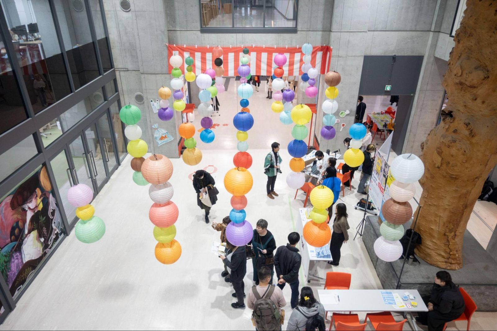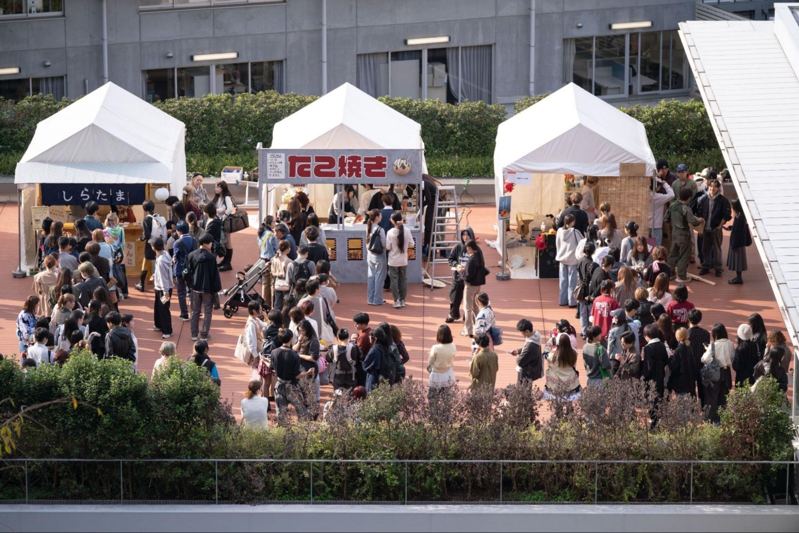 昨年に引き続き、学生が学科の授業で制作した作品を展示する「学生作品展」、有志の学生による「物販企画」、学科対抗の露店企画「フードコロシアム」、サークルや有志の学生が演奏やダンスなどを披露する「ステージ企画」など、多彩なプログラムが学内の各所で開催されていました。2日間では回りきれないほど……! 今回の記事では、フードコロシアムが行われていた望天館と学生作品展や物販で盛り上がった直心館、人間館を中心に、その魅力をたっぷりお伝えしていきます。