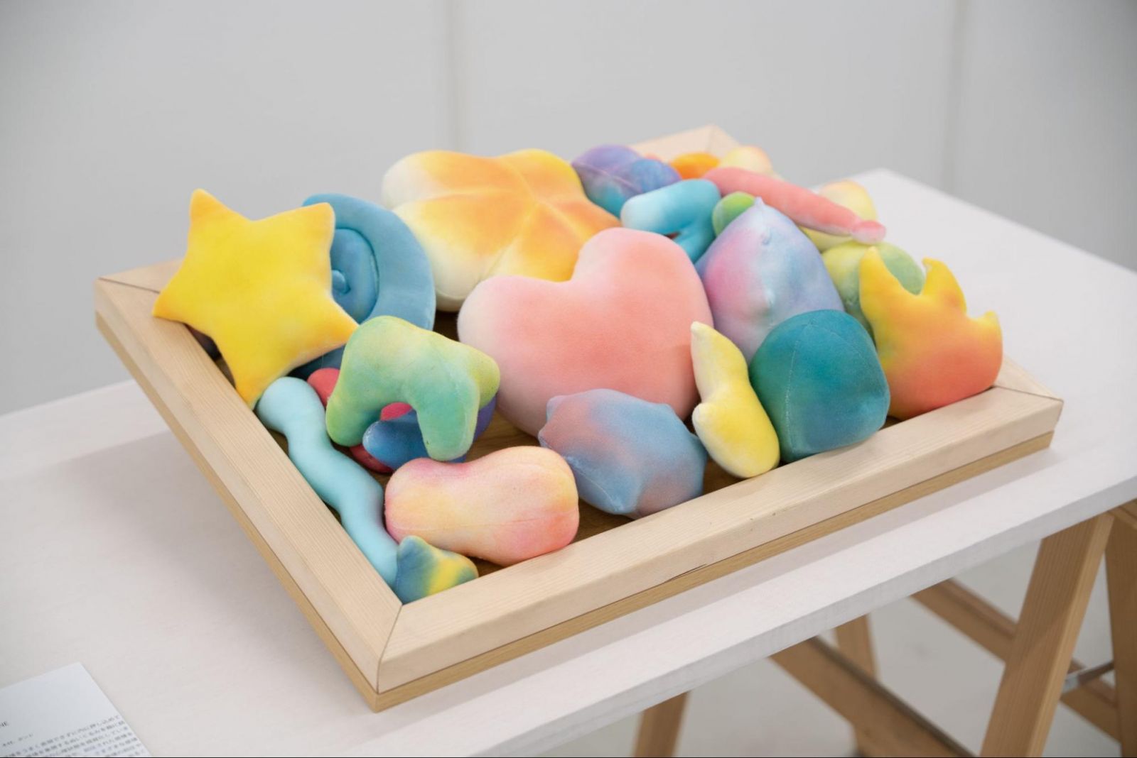 次に向かったプロダクトデザイン学科では、産学連携授業などのプロダクトデザイン演習をはじめ、照明器具や家具などの分野別のデザイン演習授業など、3年生(一部2年生)前期の8つの専門授業の成果が展示されていました。100円ショップで有名なダイソー(株式会社大創産業)との商品開発プロジェクトで発案され、SNSで話題になったプロダクトの制作過程を垣間見ることのできる、ワクワクする展示も盛りだくさん!