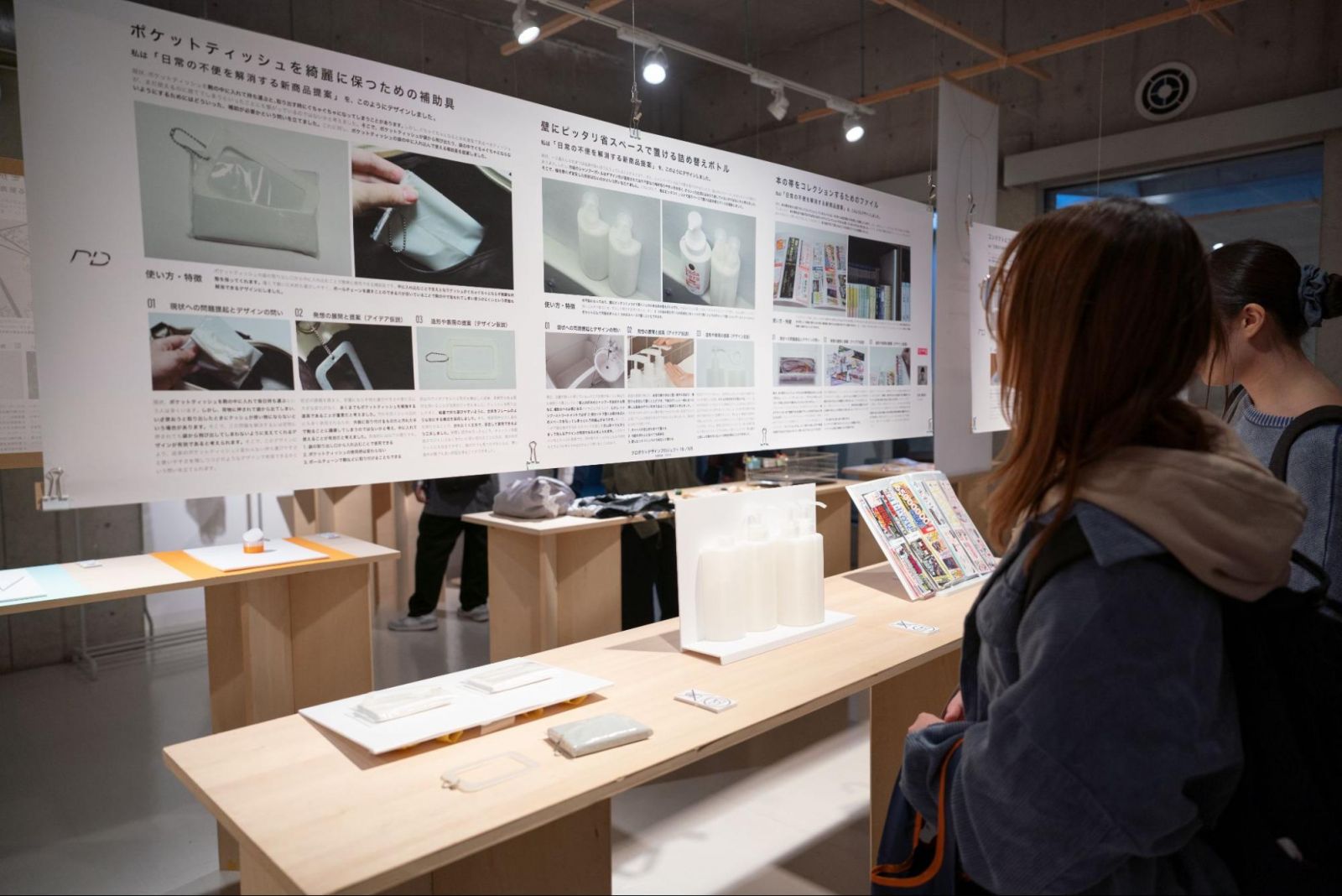 他にも、「機能認知から情動を導く造形」の家電をデザインする授業や、「大学生の食の“楽しい”」をUI・UXを通じてデザインする授業などの成果物を見て回ることができ、見ていると「これ、家にほしい!」「使ってみたい!」とだれかに話したくなるような、プロダクトを通して利用者の生活を変化させるアイデアが詰まった展示でした。