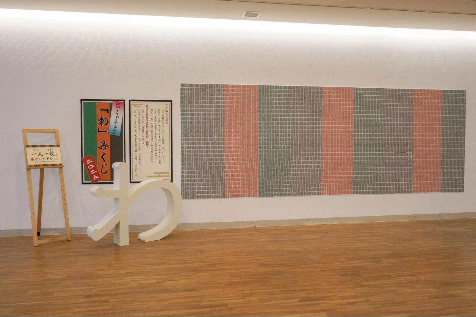 ギャルリ・オーブ入り口に掲示されていたのは「わ」みくじ。今年の大瓜生山祭のテーマである「わ」から生まれた言葉が書かれたおみくじです。