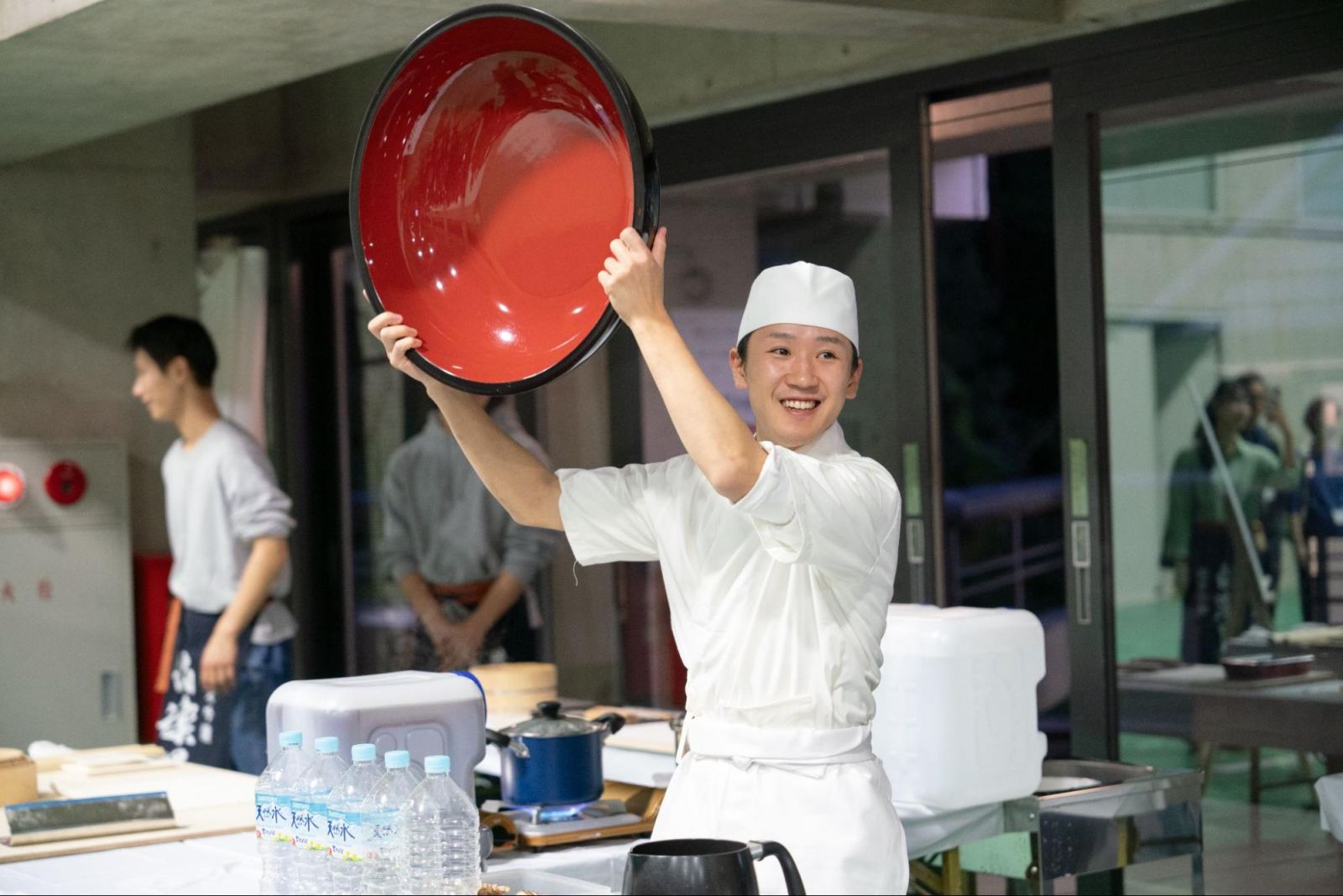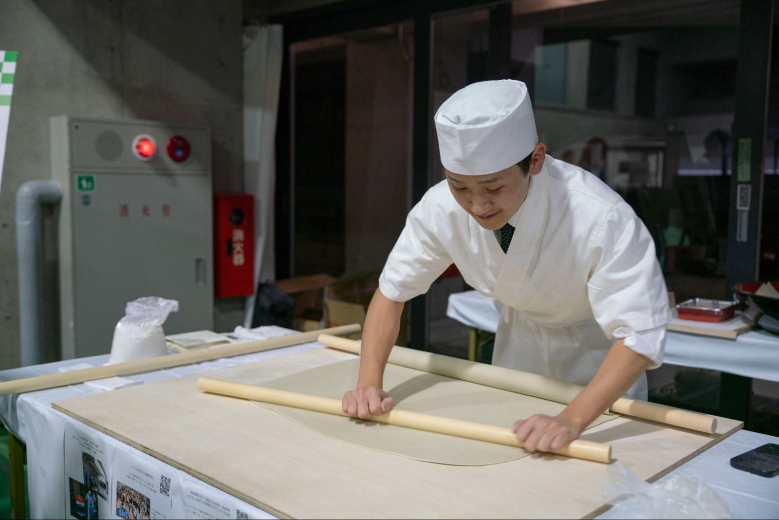 なんと、三木さんが目の前で蕎麦を打つ様子を見ることができるライブキッチン形式で、並んでいる間も楽しんで順番を待つことができました。疲れた体を労るのにうってつけな温かい鴨せいろに、卒業生も先生方も舌鼓を打っていました。