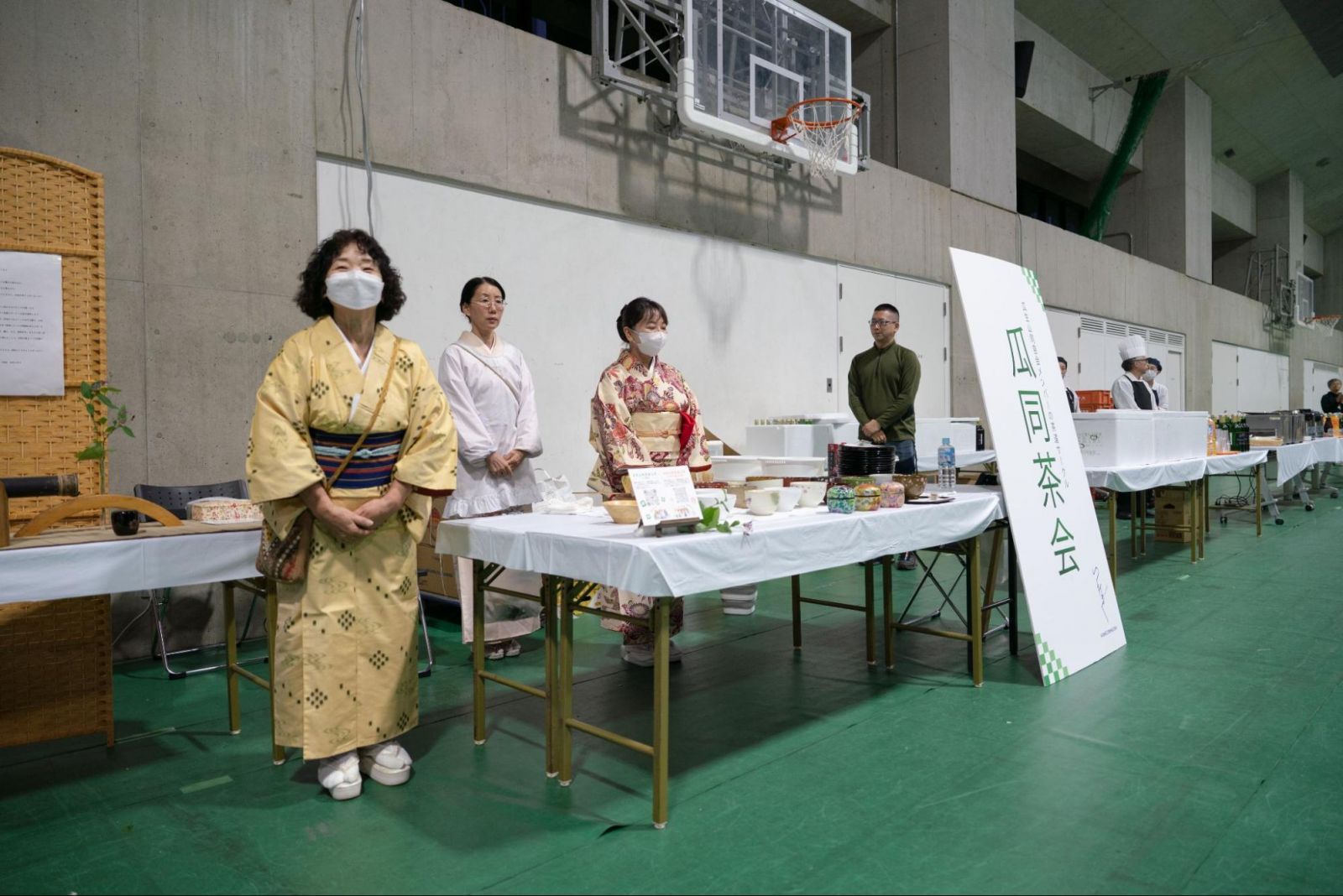 また、会場では、Homecoming Day特別呈茶会と題して、瓜生山同窓会のメンバーで立ち上げた茶道サークル「瓜同茶会」の方々が呈茶をしてくださるイベントも行われていました。秋らしい安納芋のお茶菓子と抹茶が、日々の疲れを癒してくれます。