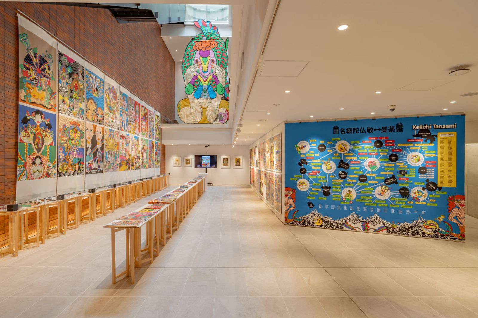 田名網先生の年表や田名網先生と関わりのあるアーティストや作品、モチーフ、土地などを縦横無尽に結んだ「田名網陀仏曼荼羅」から、田名網先生が学生に個人的に出した課題とそのコメントまで、様々な角度から田名網先生の足跡を辿る展示が行われました。