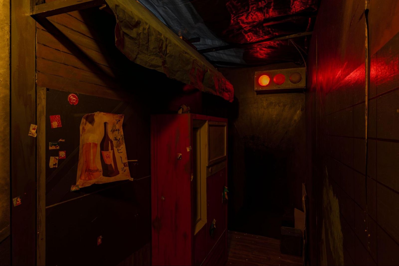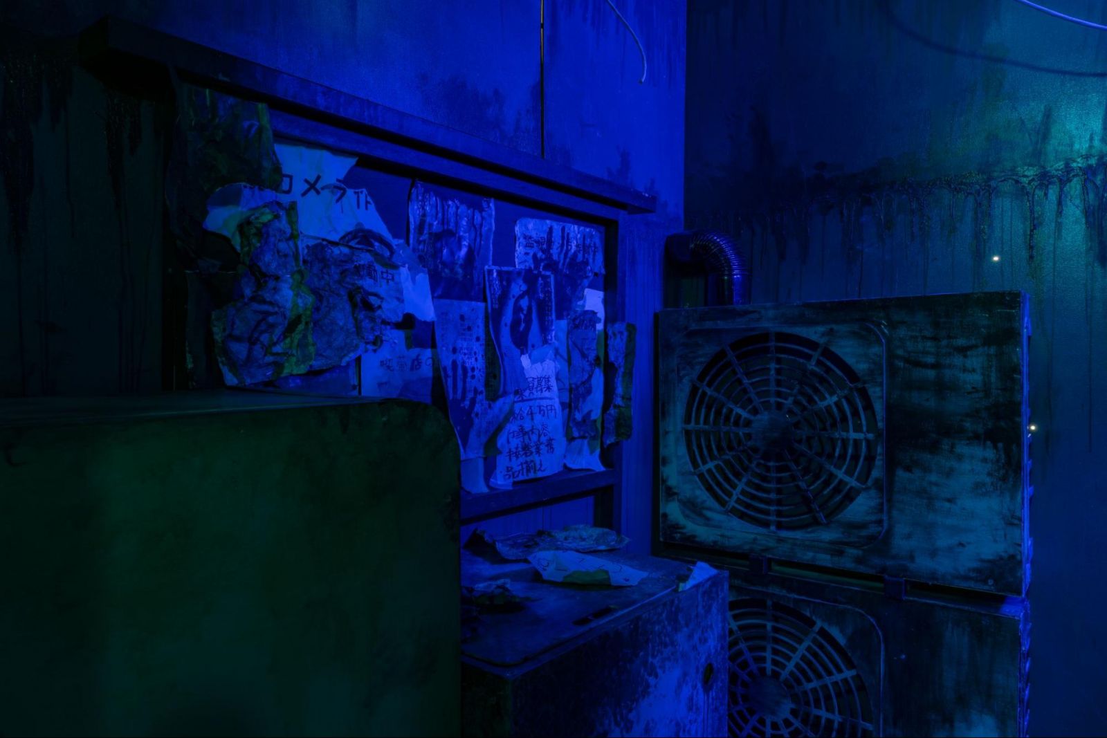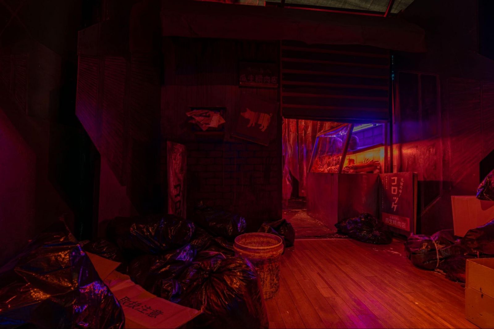 武田さん「お化け屋敷は3つのメインストリートを辿る構成だったと思うんですけど、どんどん廃れていく演出を壁で見せることにこだわっていました。壁っていうのはメインストリートだけじゃなくて、裏路地や店舗の壁も含まれています。最初の路地から次の路地、その次の路地に進めば進むほど廃れていく。照明やチラシの状態でも感じてもらえたかもしれないですけど、壁からも感じてもらえるように工夫していました」
