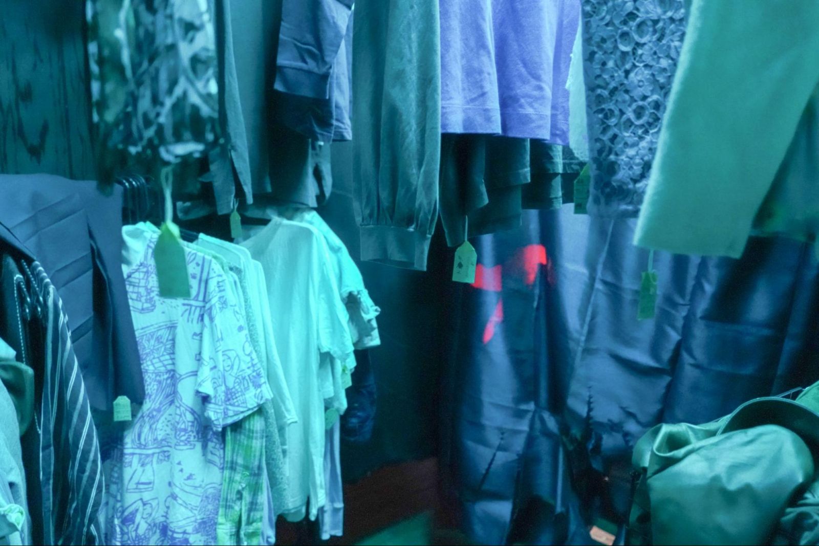 洋服屋には大量の服が並び、手作りのラックやレジ、鏡も配置されていて、思わず「本当に洋服屋として営業されているのでは」と錯覚してしまいます。当然お化け屋敷なので、服を上から吊るしたりすることで、いつ恐怖が来るか視覚的にわからないようにする工夫や、試着室から突然出てくるスタッフには心底驚きました。