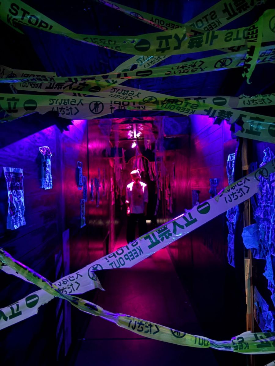 また、この最初の道のりは子どもが遊んでいる雰囲気を表現したといいます。確かに恐怖感はあるものの暖色の照明で照らされていることもあって、怖すぎて動けないようにしようという意図は控えめに感じました。ですが、ここまではウォーミングアップ。ここから先は本当のお化け屋敷が待ち構えています。
