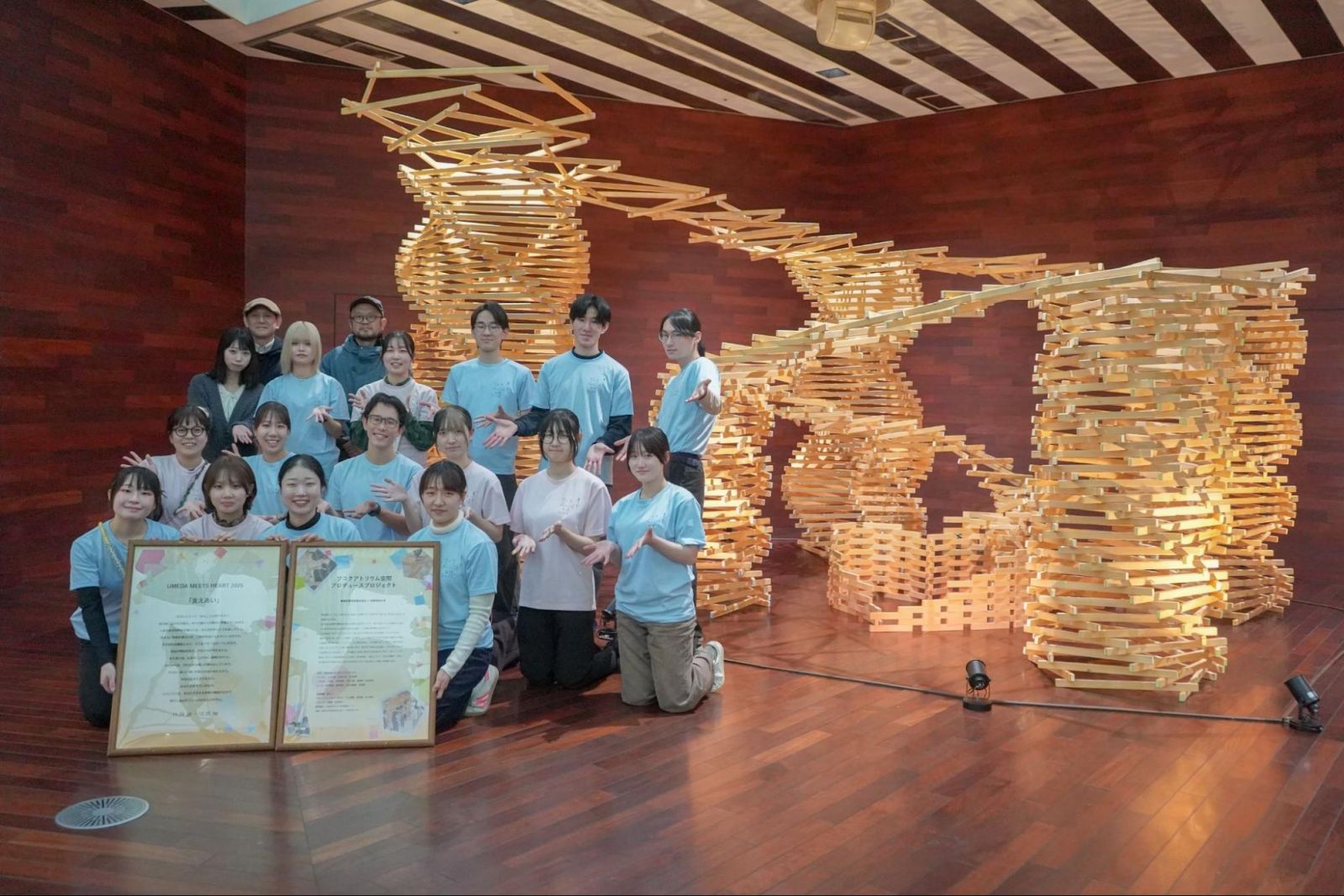 作品の中に重ねられた無数の木材が、そして学生たちが作品に込めた”支えあい”の思いがその記憶をそっと照らしてくれるはずです。