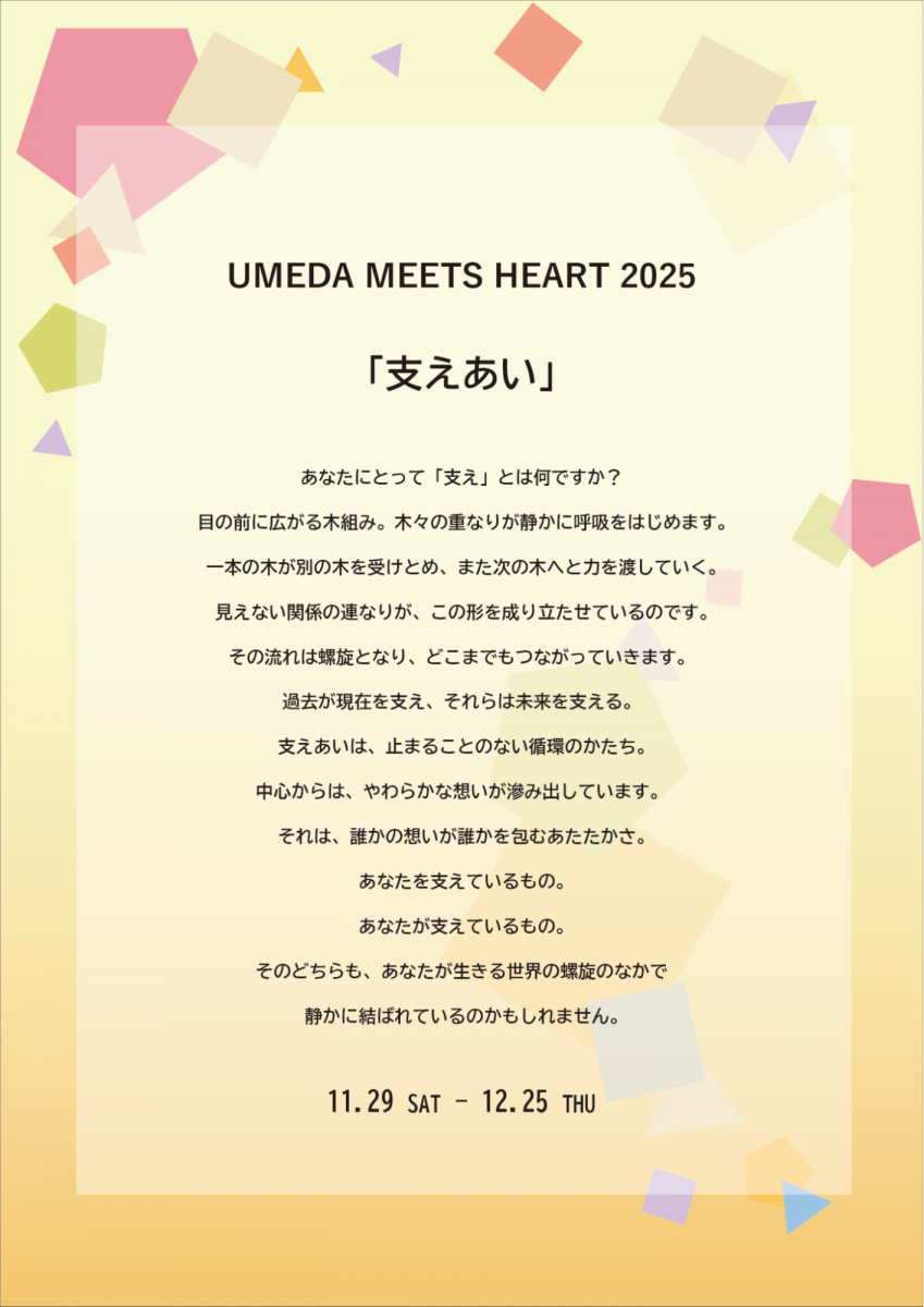 主張しすぎず、ふと見つけた時に心が温かくなる存在として設計され、UMEDA MEETS HEART 2025のコンセプトとも響き合います。