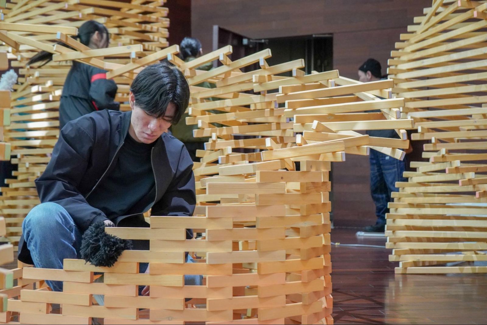 作品『支えあい』──見えないつながりを木組みで描く