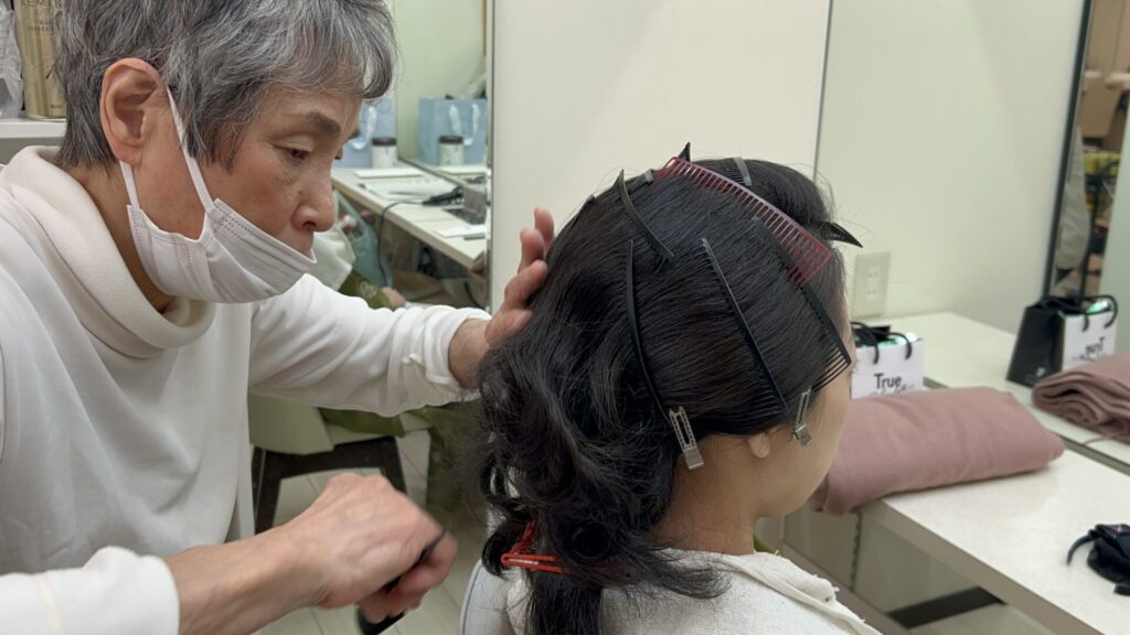 ここでみっちりと基本を学んだあと、着付けにも興味を持ち美容師の仕事を離れます。そうして20年が経ち、ふたたびキヌ美容室から声がかかった時には、二つ返事で戻ることを決めたそうです。