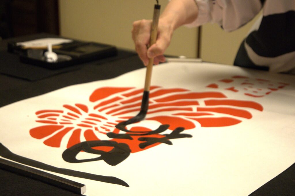 「全て手書きなので、最後の文字を失敗したら一から書き直しになります。なのでお名前を入れる時は舞妓さんにおめでとう、そして依頼してくれた方にありがとうを言ってから呼吸を整えて書き始めるようにしています」