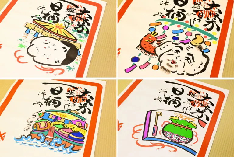 「いつでもこの太い筆で描くんです。こだわりというか、細いところを細いので書いてもなんというか味が出ない気がして。寂しくなったら嫌なので、賑やか、華やかにおめでたく描くように、あとは昔に忠実に描くようにしています。できるだけアレンジはせずに、昔のままを残したいので復刻したり昔の本とかを見てこれは。と思ったら描いています」
