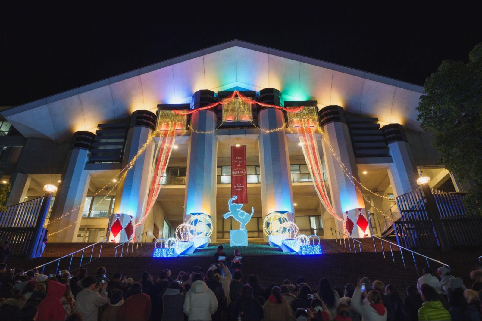 白川通に面する京都芸術大学の玄関口・大階段が、今年もイルミネーションの光に包まれます。