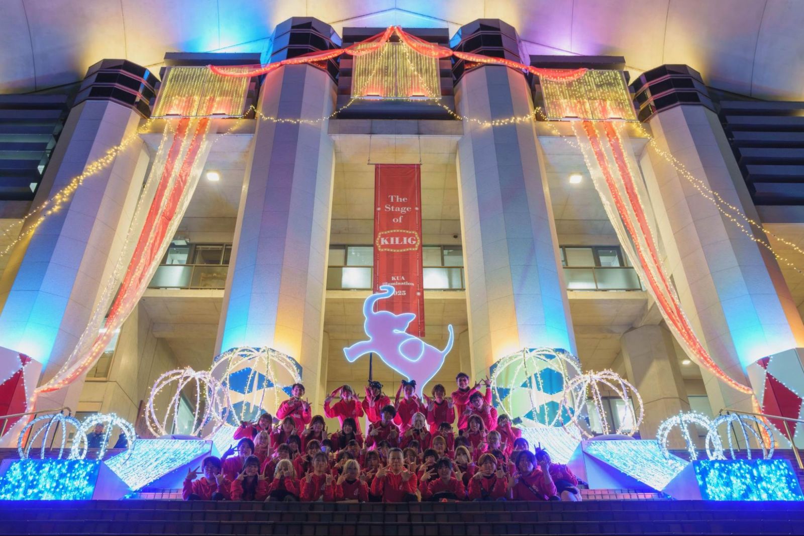このイルミネーションを創りあげたのは、学生44名とMS(マネジメント・スチューデント)2名の計46名。