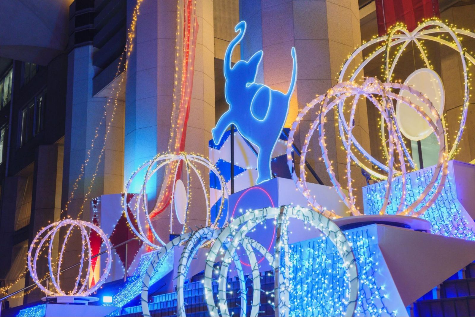 冬の冷たい空気の中、サーカスをモチーフにした華やかなイルミネーションが、