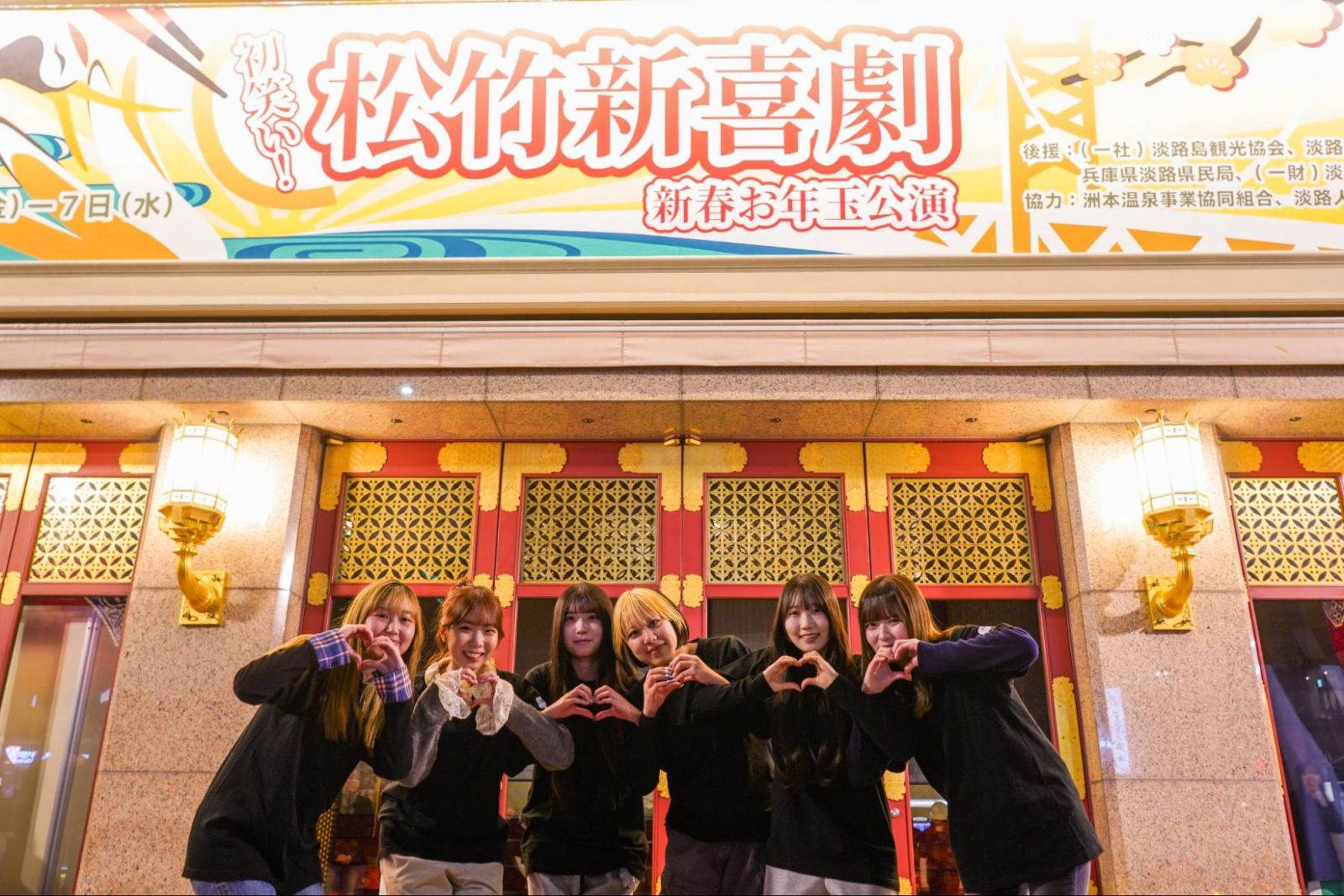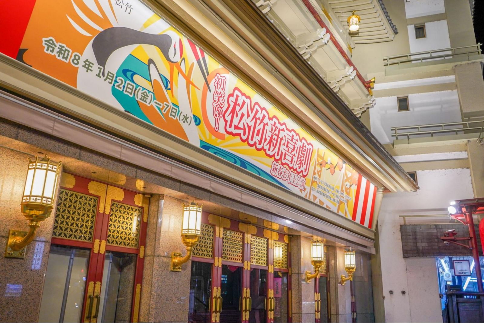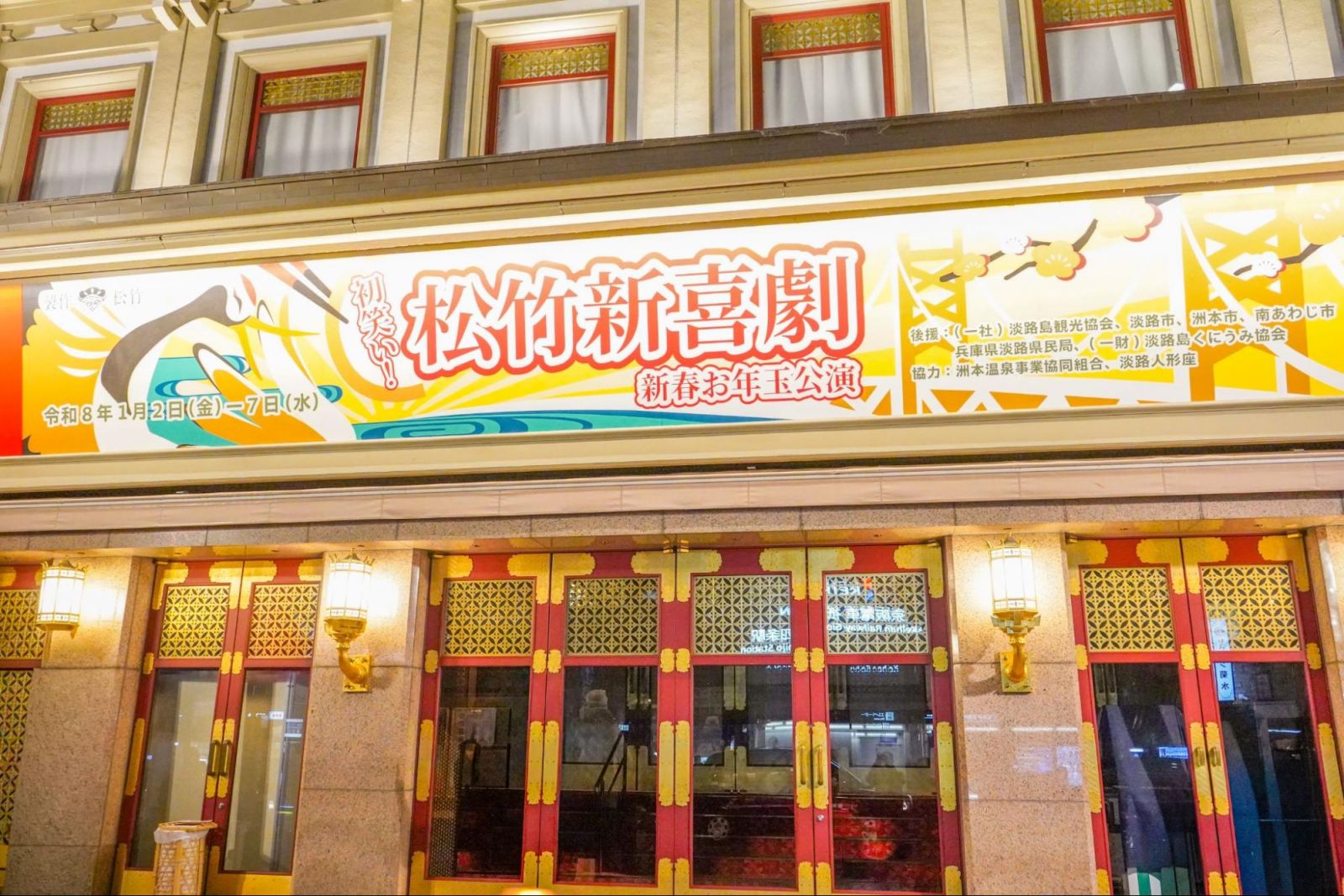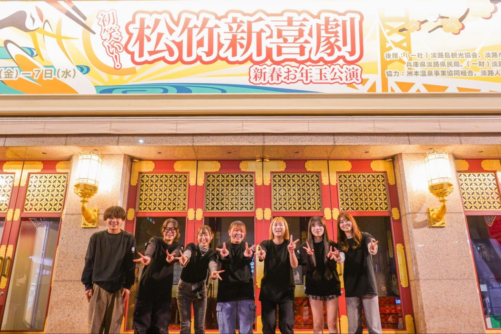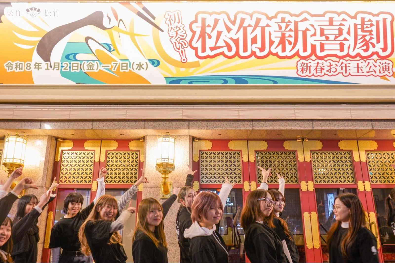 令和8年1月2日(金)から1月7日(水)の6日間、本学の学生が制作した「一文字看板(いちもんじかんばん)」が南座の入り口に掲げられました。2025年度の後期に制作された一文字看板の演目は「初笑い! 松竹新喜劇 新春お年玉公演」です。