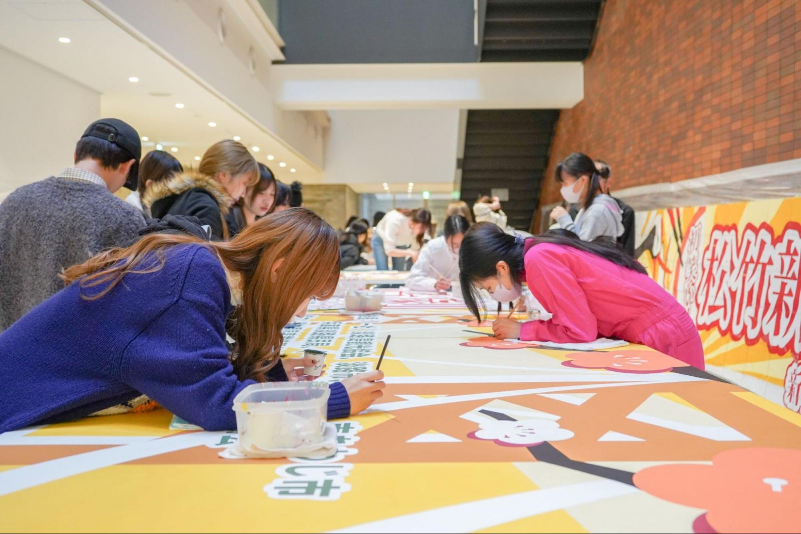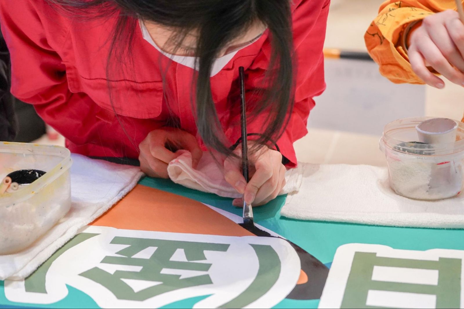 縦1.45メートル、横10.3メートルの南座の正面入り口を飾る看板を、さまざまな学科の主に1年生から2年生までの学生約30名が協力して制作するプロジェクトです。
