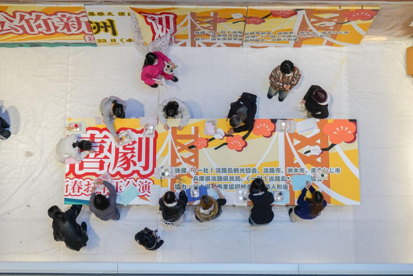 田辺さん「事前にクライアントである南座様から公演パンフレットなど資料をいただき、それを読んで内容を把握しました。公演時期にあわせて、お正月らしい要素を取り入れることも含めて、松竹新喜劇の新春お年玉公演のイメージを損なわないように心がけました」