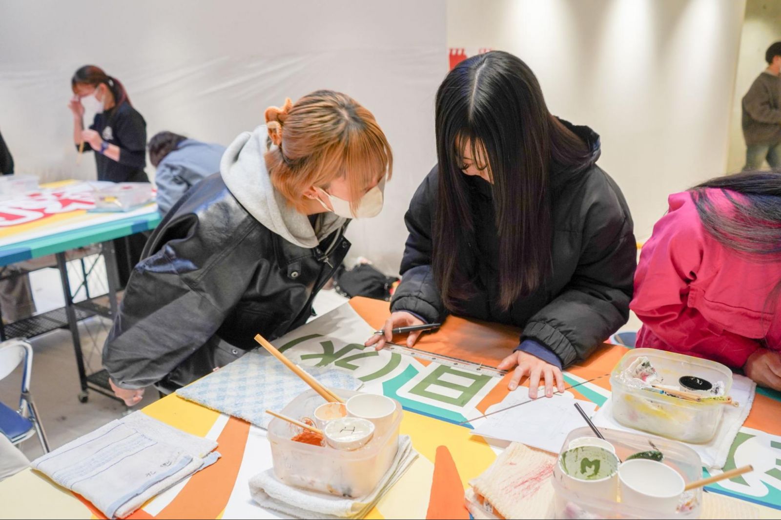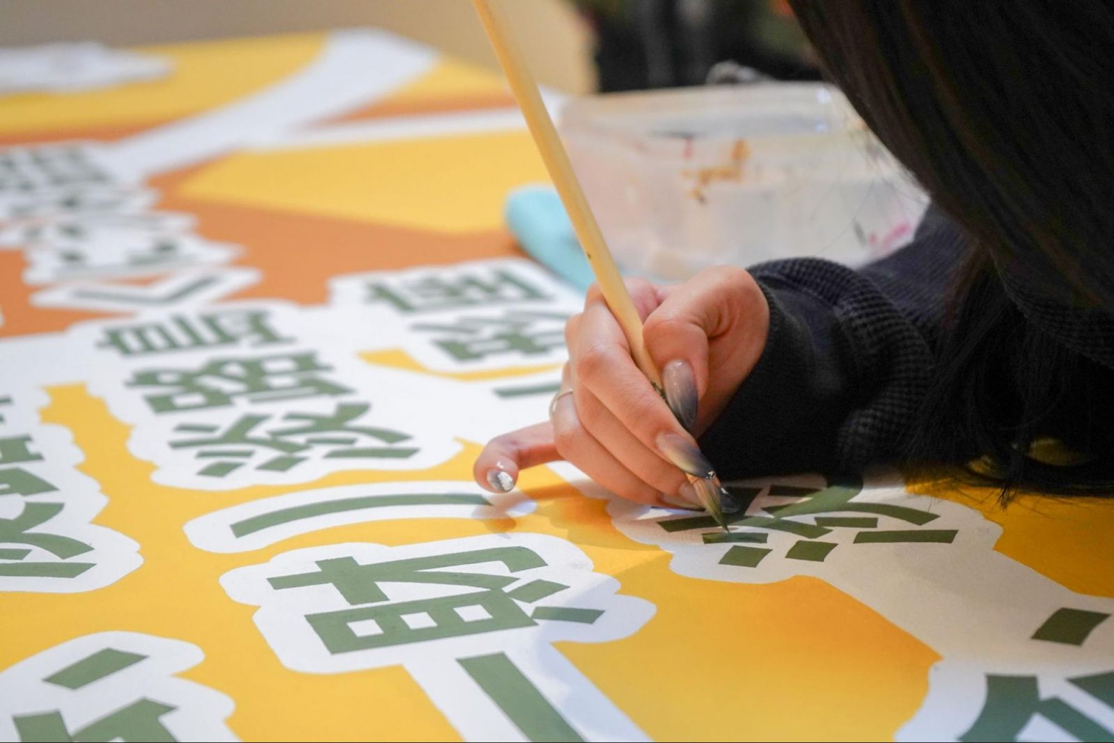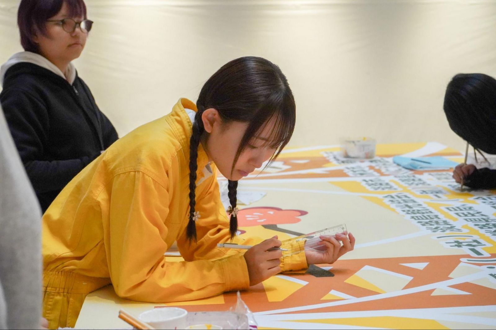 本プロジェクトのキックオフは2025年9月。キックオフミーティングでは、中心となるマネジメントメンバーの学生が、プロジェクトに参加する学生と面談を行いました。その面談を通して各学生の特技や持ち味、キャラクターを把握し、それらを最大限に生かせるよう5つの班に振り分け、バランスを保ちながら役割分担をしたそう。9月下旬には、京都市景観条例についてのレクチャーを通して、京都という町の地域性を学び、10月下旬には看板の具体的なデザイン案がまとめられ、そこからいよいよ手作業での制作へと進みます。