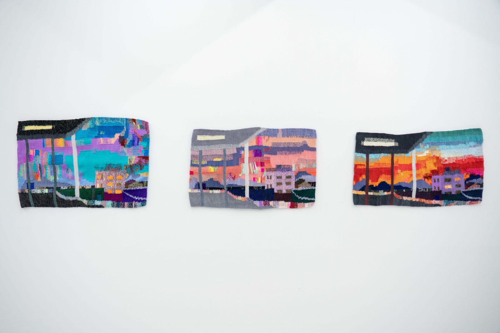 芸術大学では、制作の過程で多くの糸の切れ端が生まれます。それらをゴミ箱から拾い集め、一本一本、手で織り重ねていったといいます。