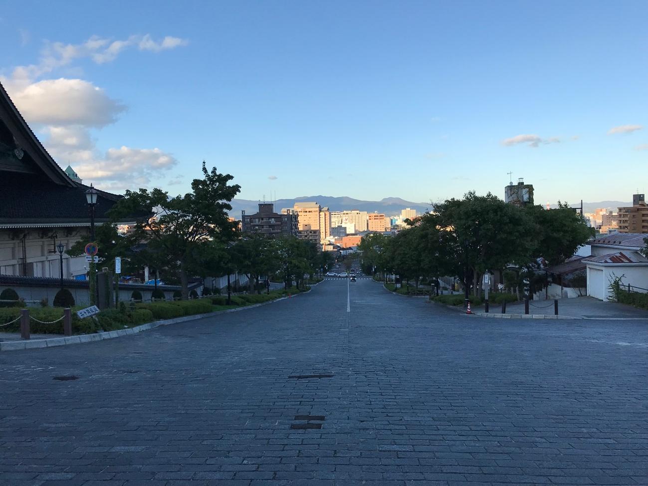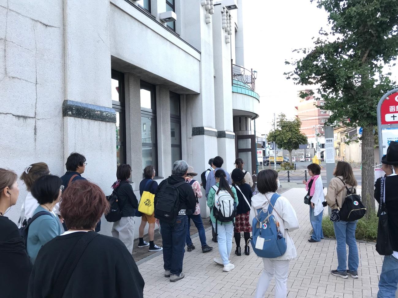 現地見学は旧丸井今井百貨店(函館市地域交流まちづくりセンター)から出発し、途中に八幡坂や二十間坂などを経由しながら秋晴れの爽やかな元町を2時間近く散策しました。