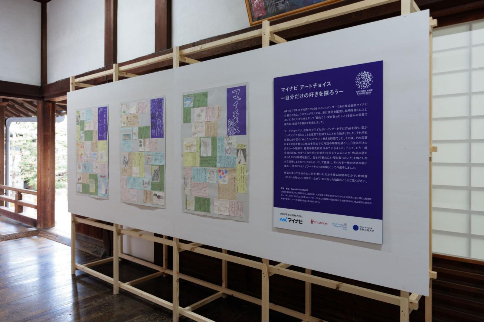 子どもたちの絵は、2月22日から3月1日まで、ARTISTS' FAIR KYOTO 2026の別会場である東福寺にて順次展示されました。