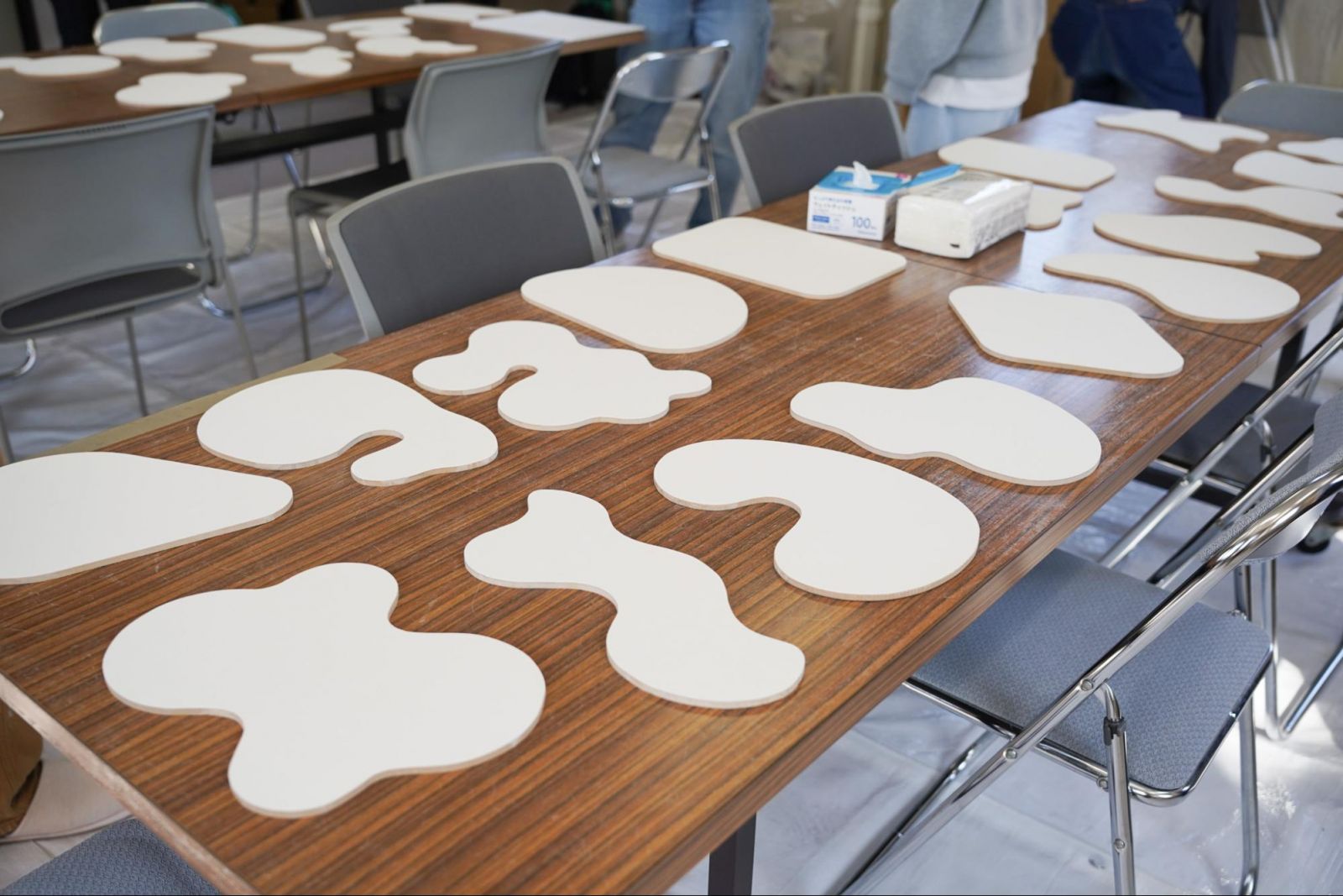 テーブルの上には、一人ひとり異なる形のキャンバスが置かれていました。