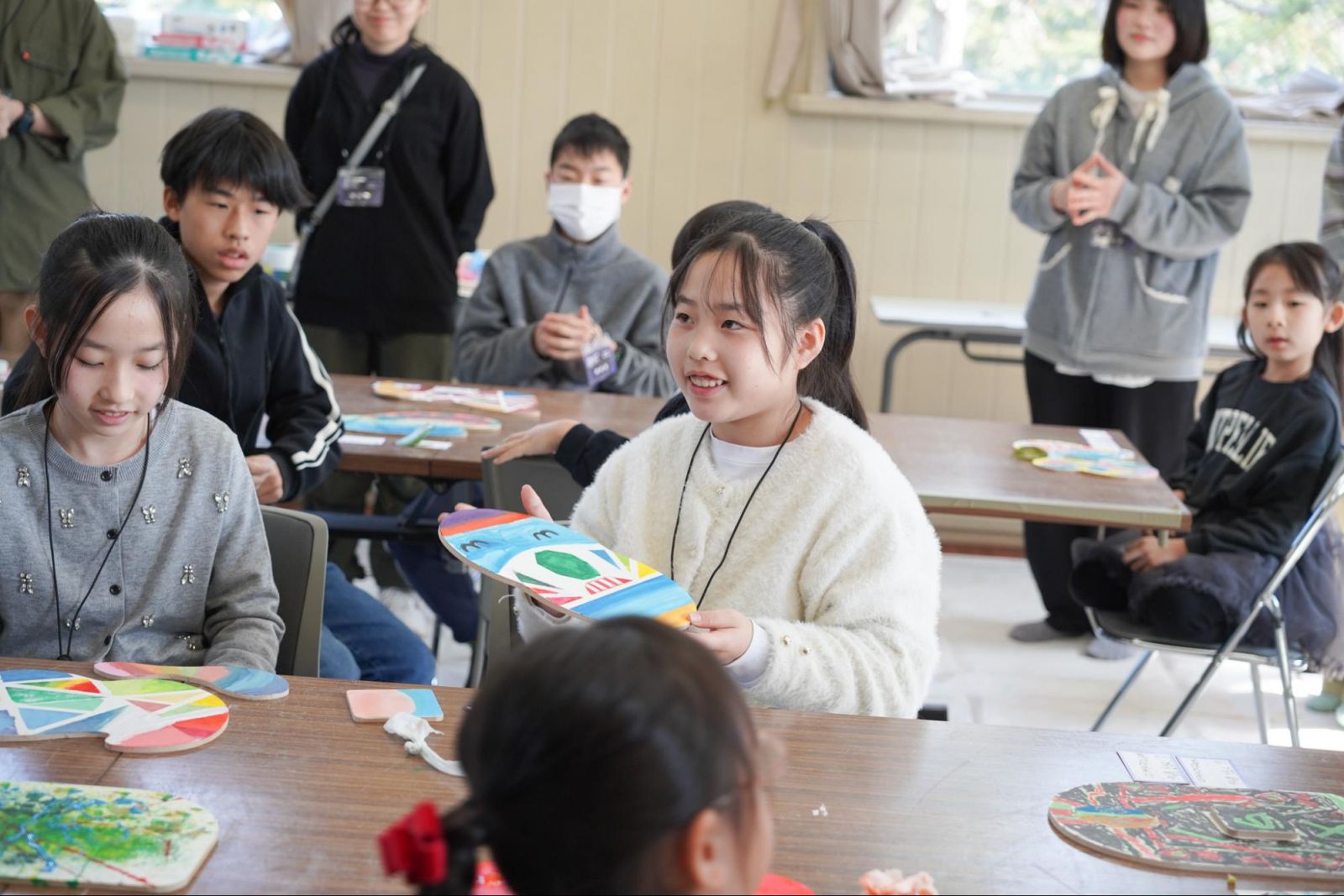 完成した作品の前で語り合う子どもたちの姿は、その言葉を体現しているようでした。