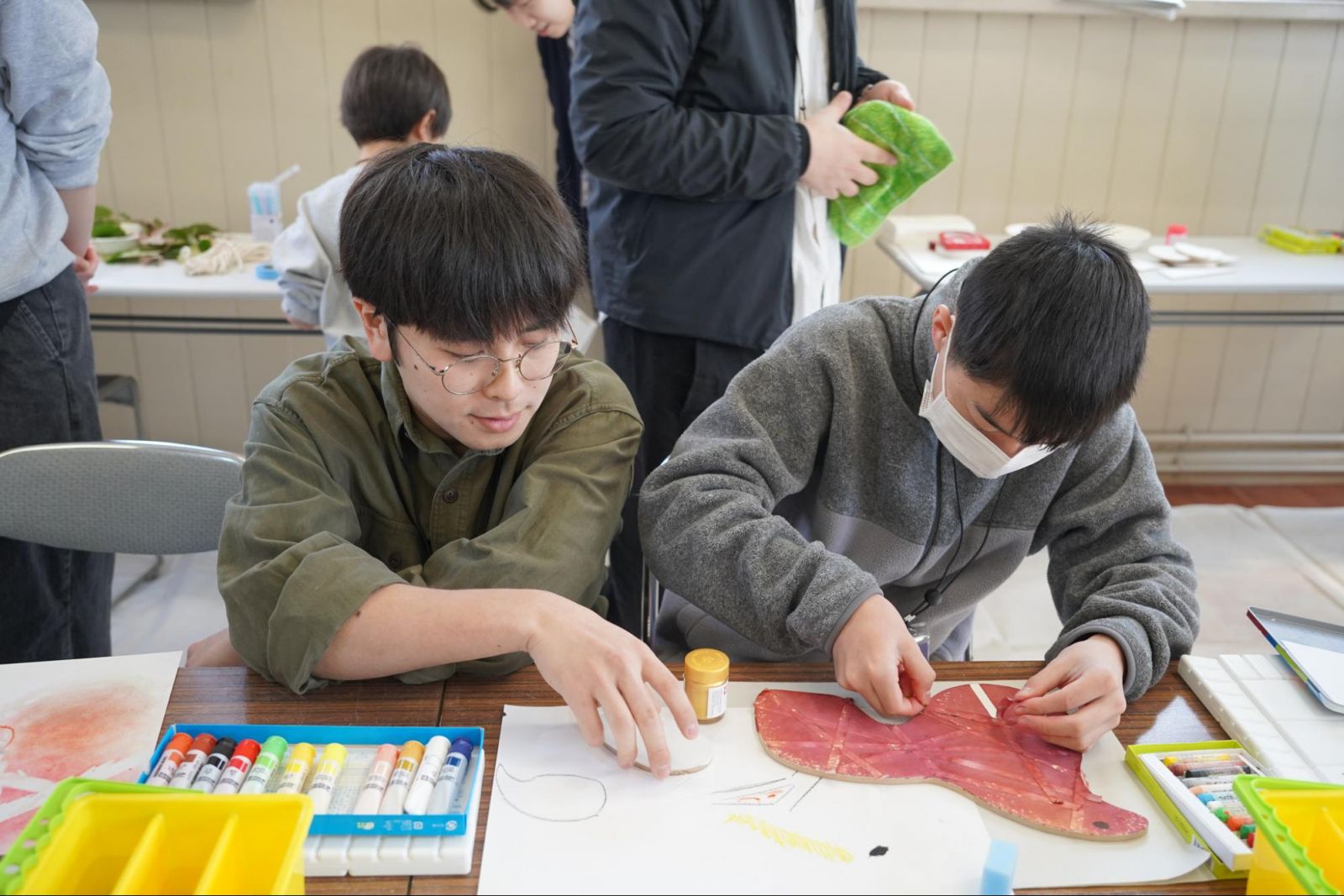 子どもたちの発想は自由で、それでいて真剣でした。学生スタッフもまた、その表現をどうすればより活かせるのかを共に考え、寄り添いながら支えていました。立場や年齢を越え、「描くこと」を通して並び立つ姿が、静かに心に残ります。