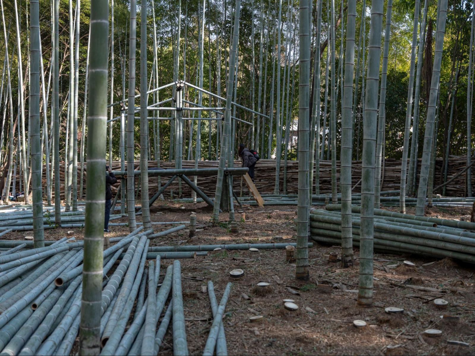 昨年、アドバイザリーボーらの作品を方丈で展示していたが、今年は展示範囲が拡張されている。特に話題となったのは、竹林を切り開いて、竹製の「方丈」を滞在制作した「Selected Artists」の黒川岳であろう。