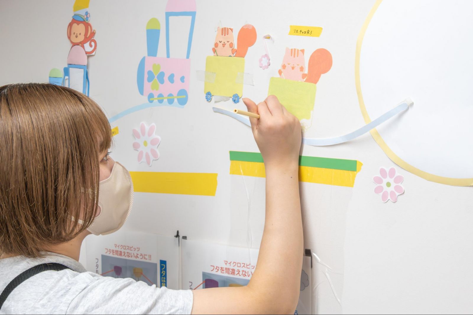中小路さん:たくさんの反応がありました。イメージとして印刷したものが貼られている時から、「めっちゃ可愛い!」という声が聞こえたり、作業をしている様子にもみんな興味をもっていて、来るごとにイラストが増えているので、楽しみだねという話をしているんです。学生さんたちも、たくさんの人数で来ていただいているのに、それを感じさせないくらい溶け込んで、みなさんが黙々と作業をされているのが印象的でした。