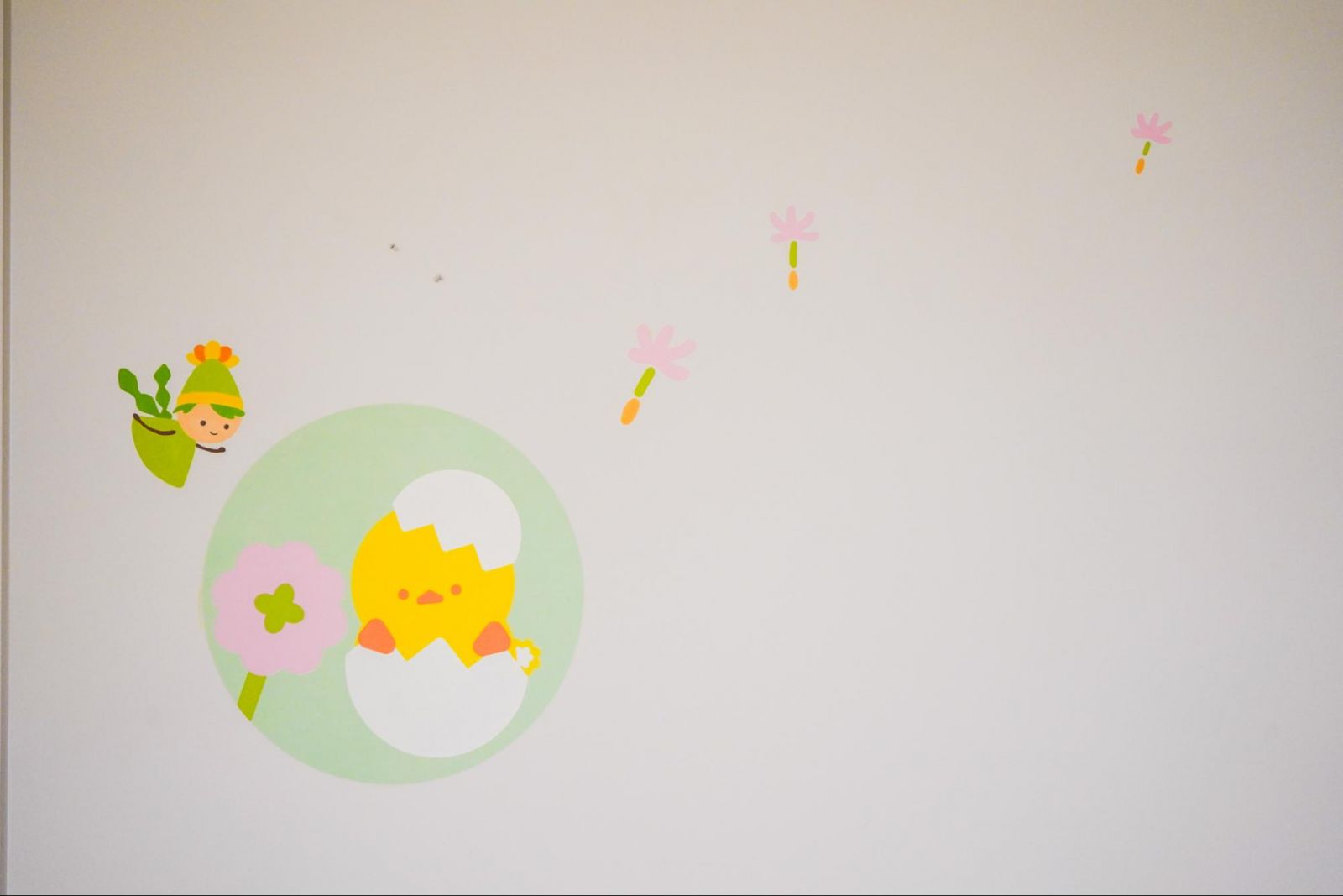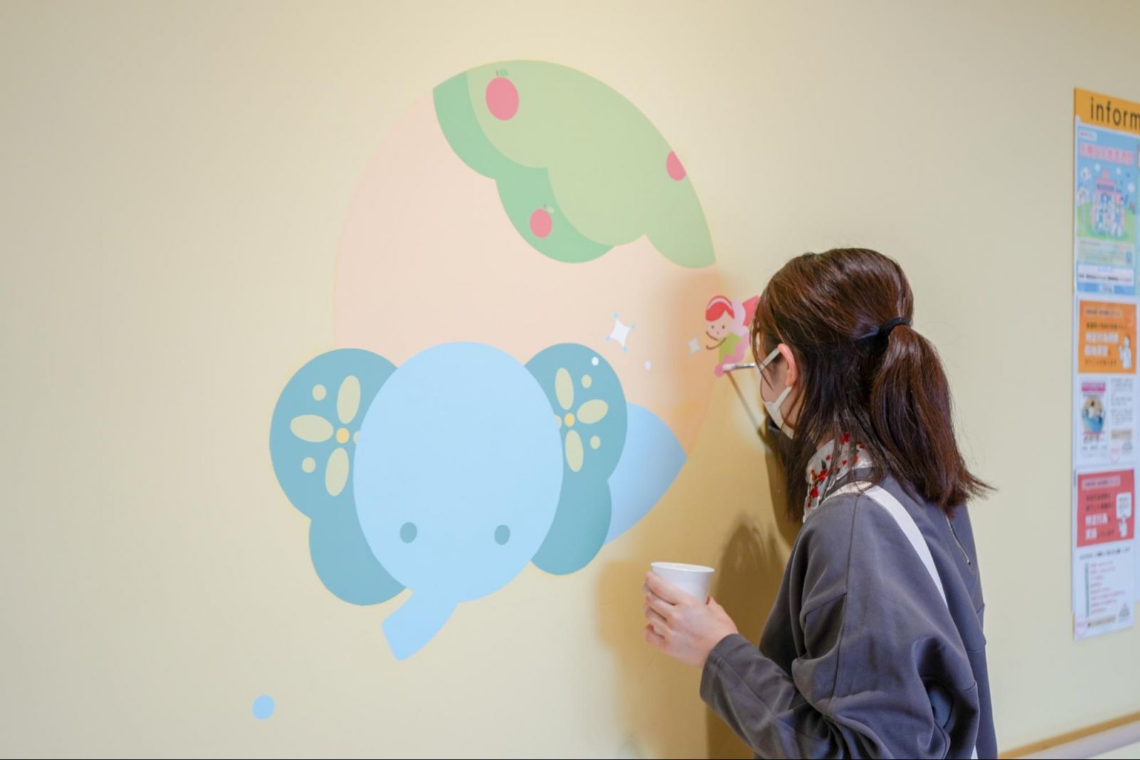 中小路さん:小児科なので患者さんは子どもたちなんですが、ご両親やおじいちゃんおばあちゃん、家族があって、その輪の中に子どもたちがいるんだ、ということはいつも意識しているんです。ご家族の方に少しでも安心していただくことが、結果的に子どもたちの治療意欲につながったり、笑顔で退院できる日につながっていくのかな、と。そういう意味では、ホスピタルアートを通して、ご家族にも、院内のコンビニに行くまでに少しでもほっとしてもらえたり、ミルクを温めるために過ごす調乳室での1分間にも癒しがある空間になればと考えていました。