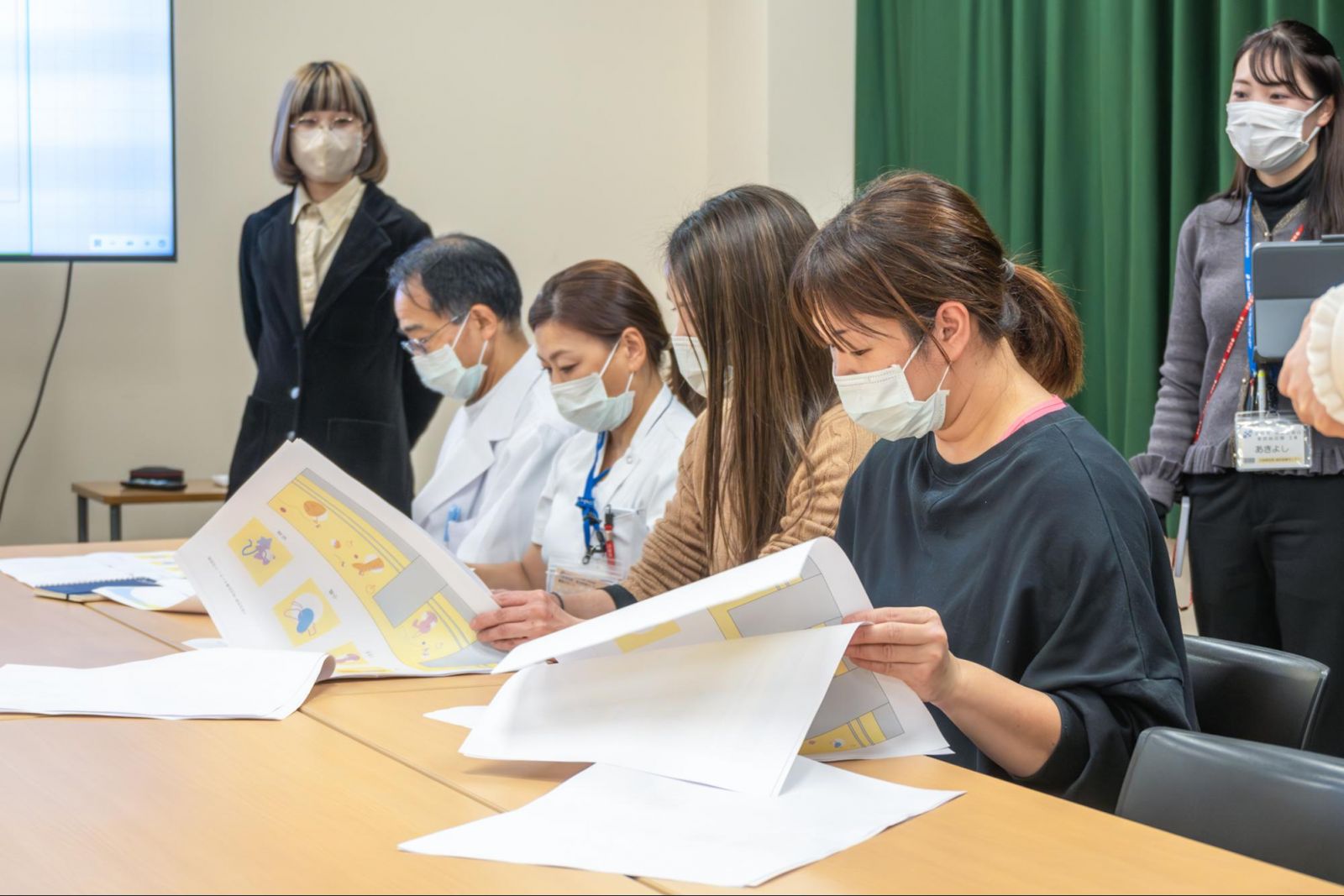 秋吉さん:4月に現在の部署に移動して、「ホスピタルアートとは?」というところからのスタートでした。私は事務職なので、普段は病棟のみなさんと関わることがないのですが、今回小児科病棟の市川師長や中小路さんをはじめ、いろんな方とお話しする機会が生まれ、現場のニーズを知る機会にもなりました。こうして関わっていくと、病棟のみなさんが現場で感じている問題点と、事務側で考えていたことの違いにも気がつき、今回の企画をきっかけに、病棟スタッフとの信頼関係をつくることもできたのかな、と感じています。