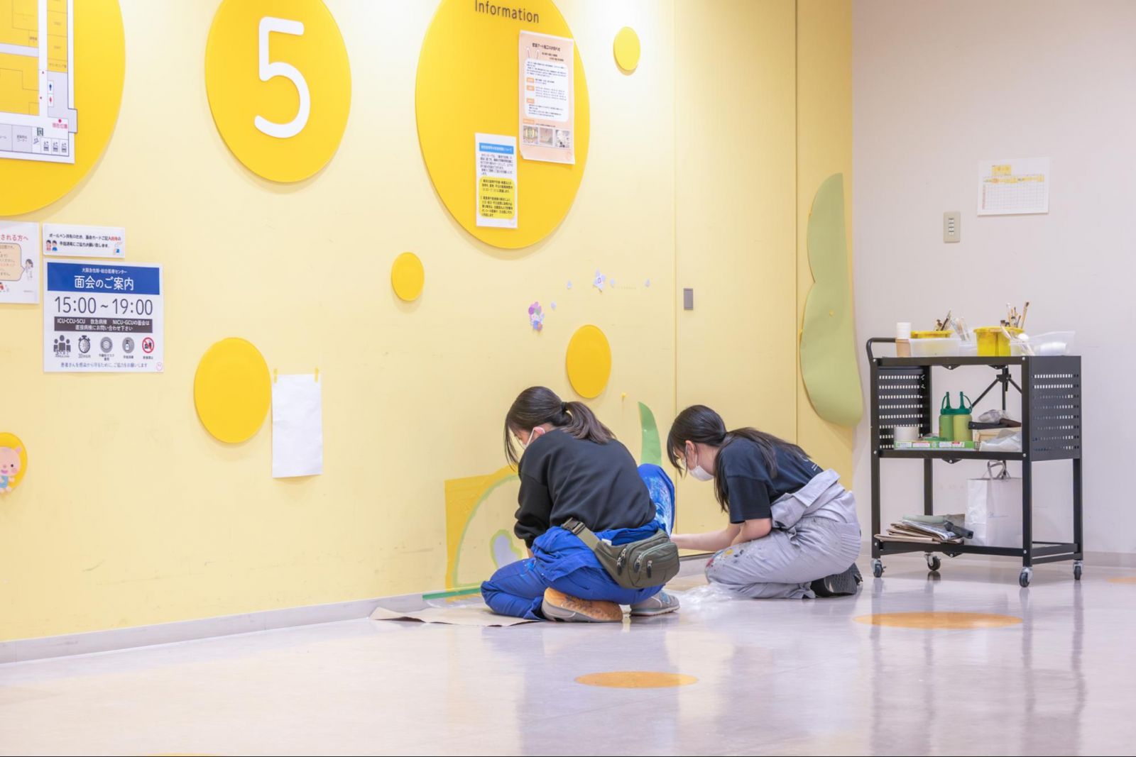 まだ寒さの残る3月。ホスピタルアートプロジェクト「HAPii+」は、大阪急性期・総合医療センター 小児科での施工をはじめていました。