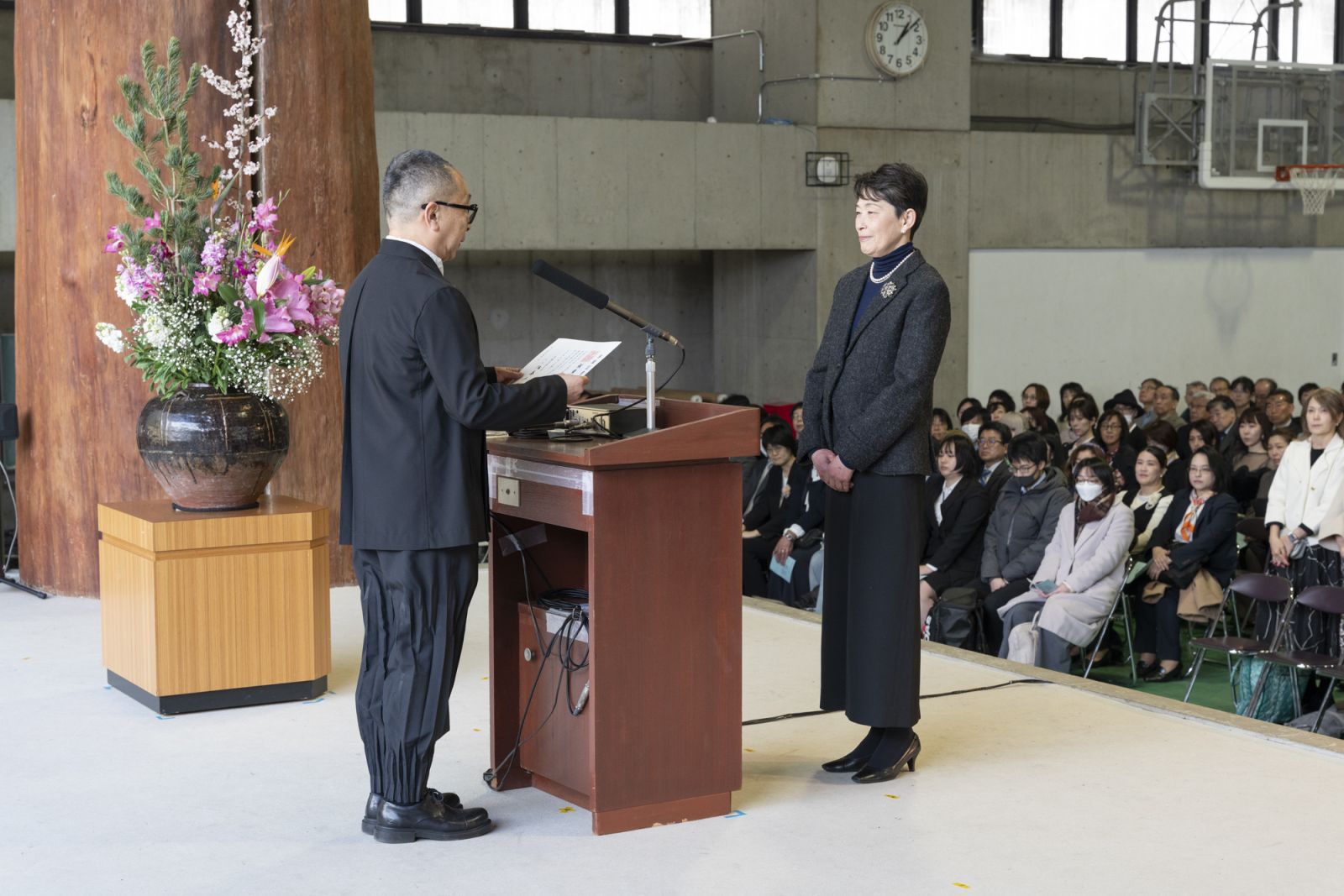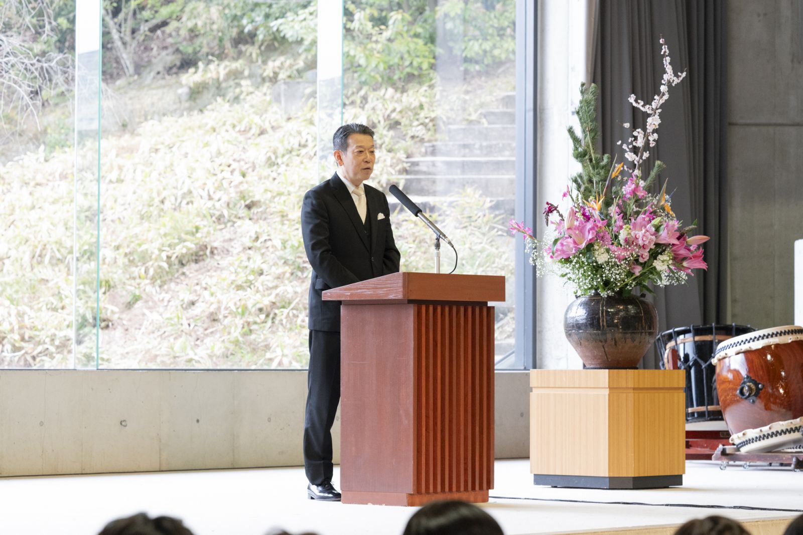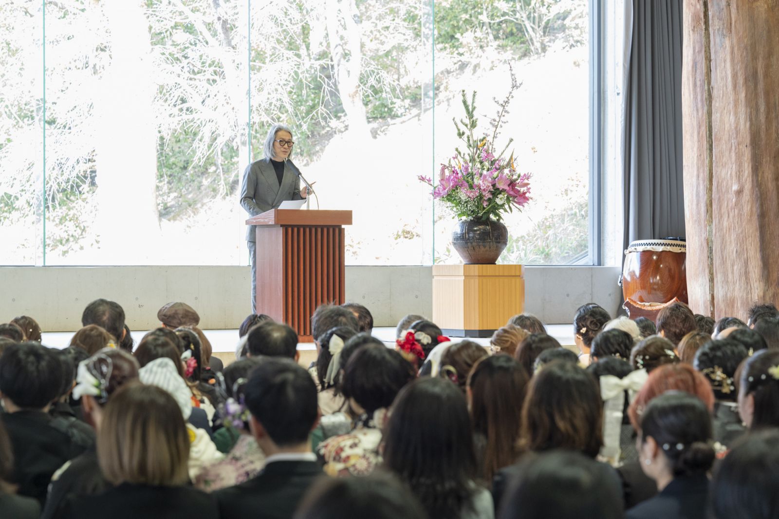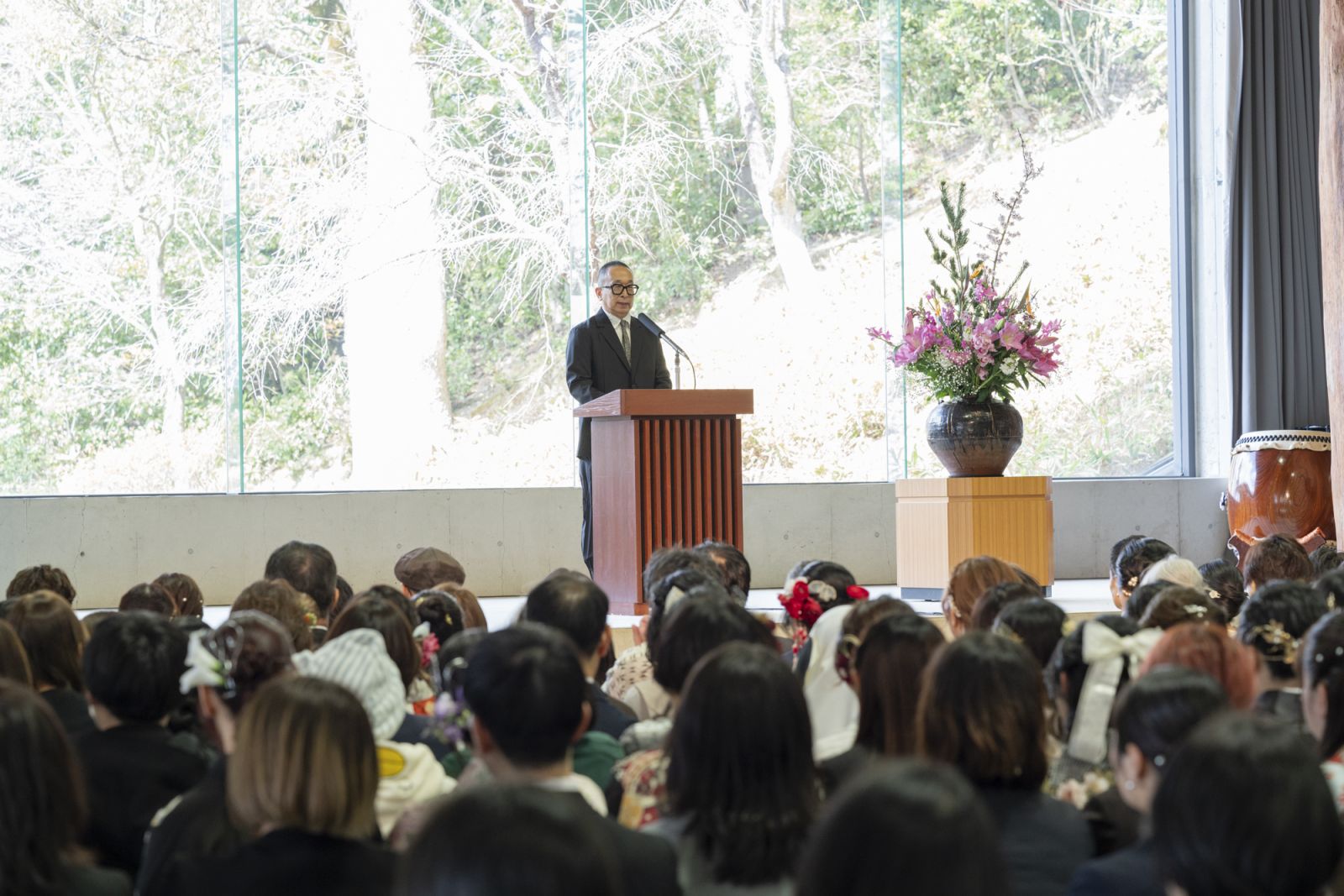 「これから卒業しても創作を続けてください。そして、一人でも多くの人たちに、感動する心や、人の豊かさって何だろうということを考える、そういうきっかけを与え続けてください」と卒業生にエールを贈りました。