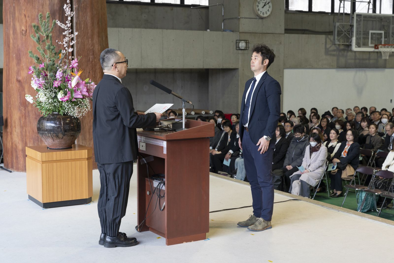 卒業の辞を読むのは、芸術学科 歴史遺産コースの中野 秀行さん。2017年に入学した中野さんの9年間の学生生活には、コロナ禍という大きな出来事もありました。一方で、比叡山延暦寺での2泊3日のスクーリング授業など、印象深い学びの機会もあったといいます。そうした経験を振り返りながら、学生生活について言葉を紡ぎました。