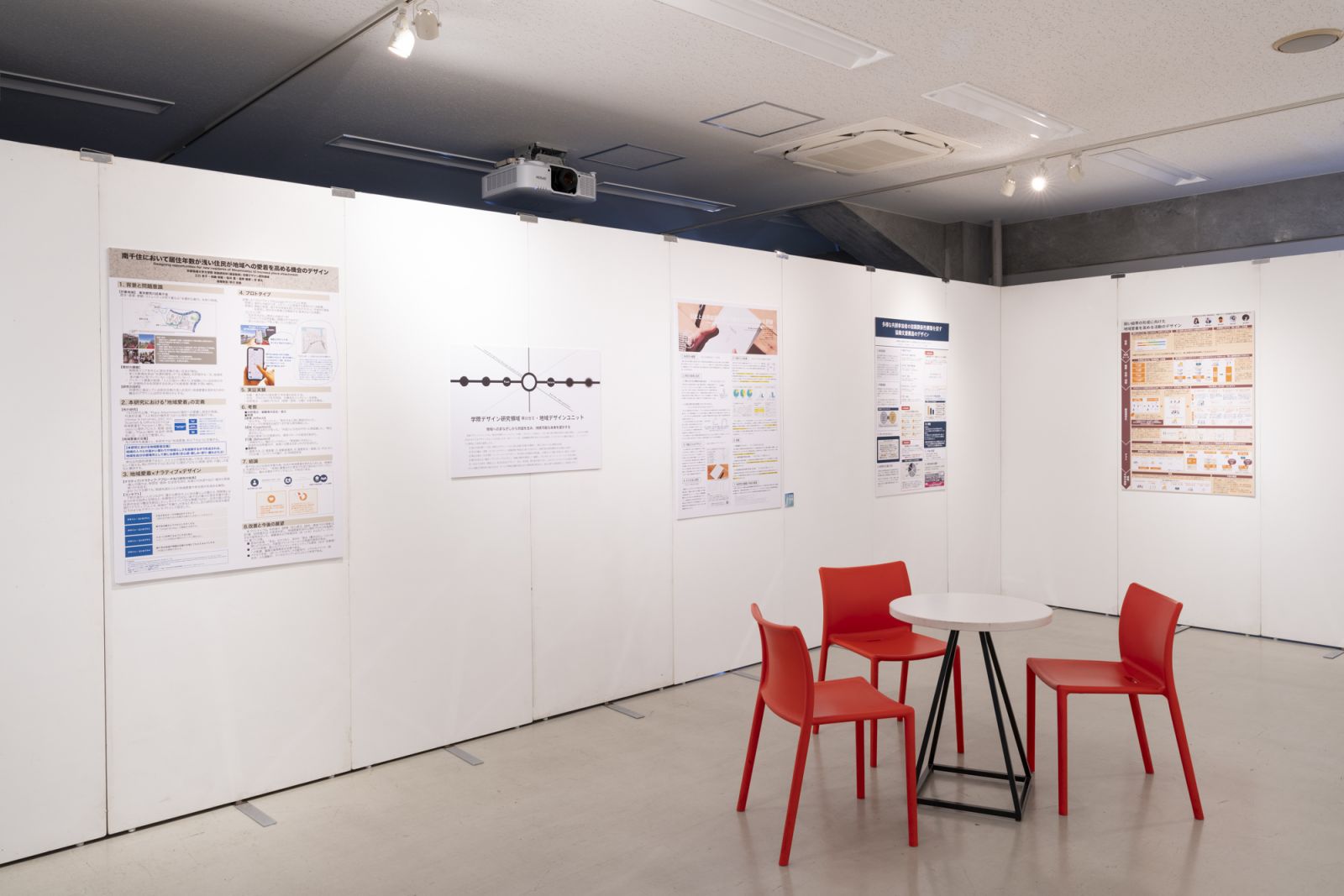 至誠館5階、学生食堂にて展示されていたのは、環境デザイン学科 空間演出デザインコース。