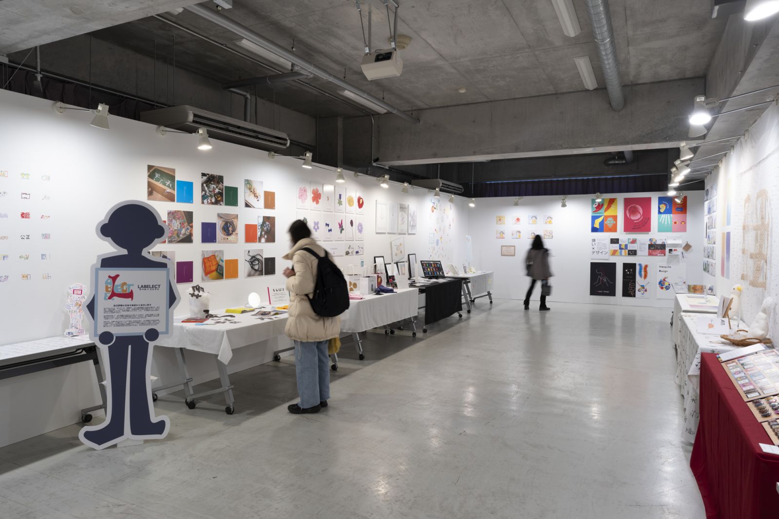 様々なデザイン、手法を用いた作品が並び、人間館の入り口を彩りました。展示された作品の他にも、テキスト作品科目であるポートフォリオも展示されており、作品制作の詳細や、学生たちのこだわりをじっくりと楽しむことができます。